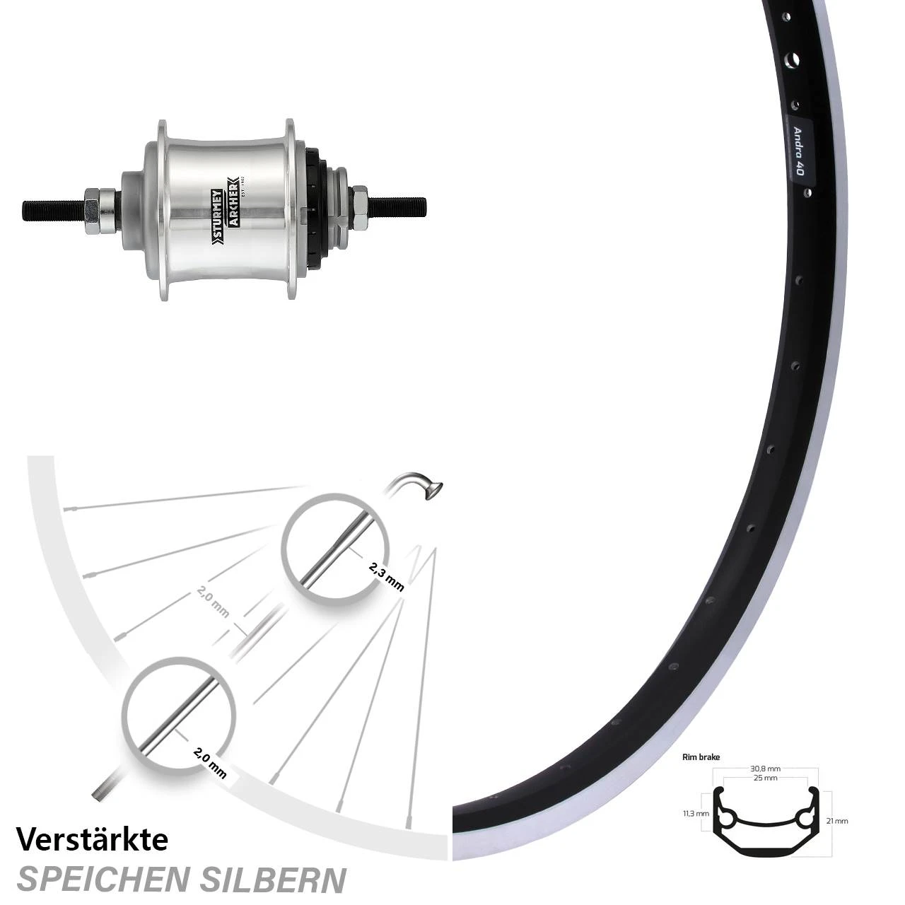 Technische Daten Hinterrad Ryde Andra 40 Felgenbremse schwarz und Nabe Sturmey Archer Automatic A2K silbern Felgenbremse