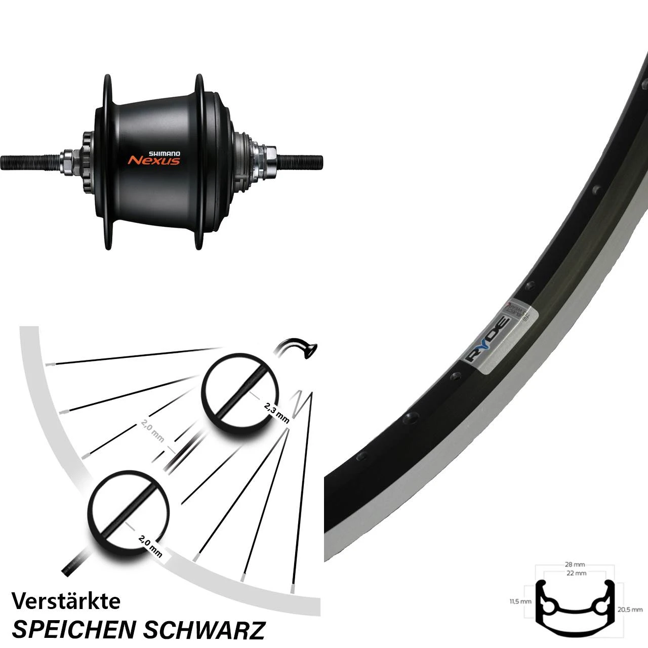 Laufräder mit Nabenschaltung von Ryde sind sehr robust. Die Felge ist in der Farbe schwarz erhältlich. Für Fahrradschläuche mit einem 6,5 mm (darf auf 8,5 mm aufgebohrt werden) Ventil ist dieses qualitativ hochwertige Hinterrad mit integrierter Nabenschaltung optimal.