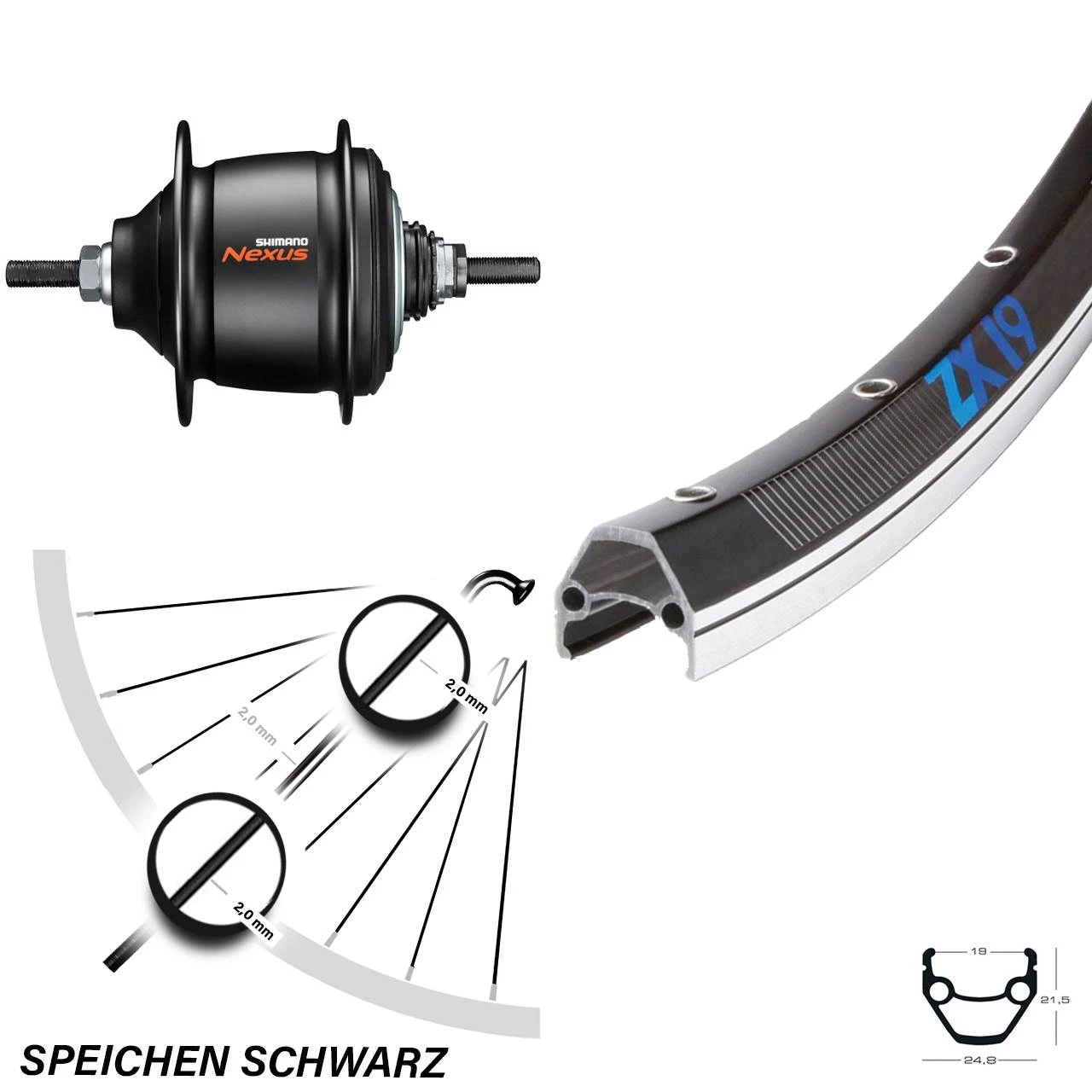 Produktbeschreibung 26 Zoll Shimano Nexus 8-Gang Hinterrad Exal ZX-19 schwarz