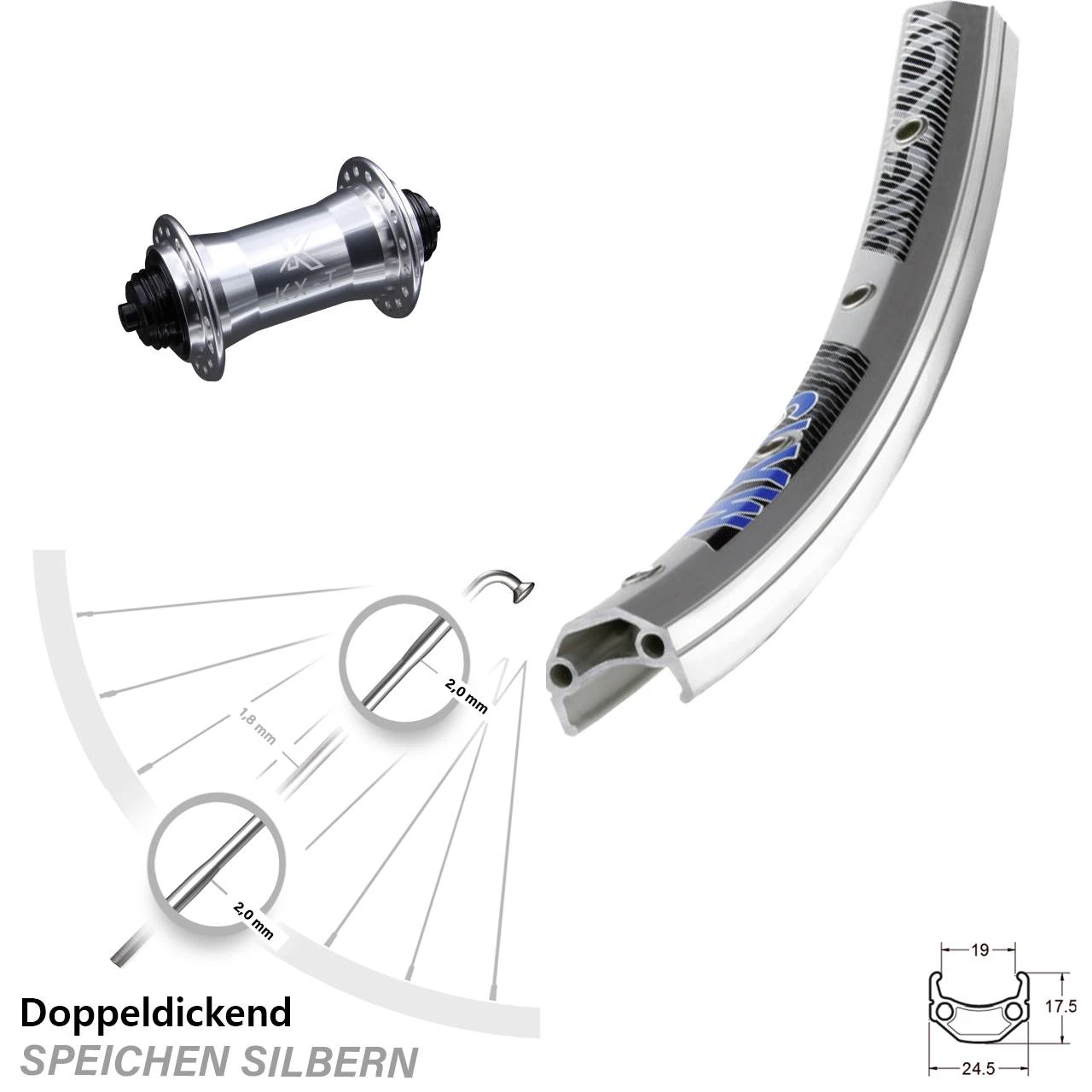 26 Zoll Vorderrad Exal MX 19 mit KX-T Nabe silbern