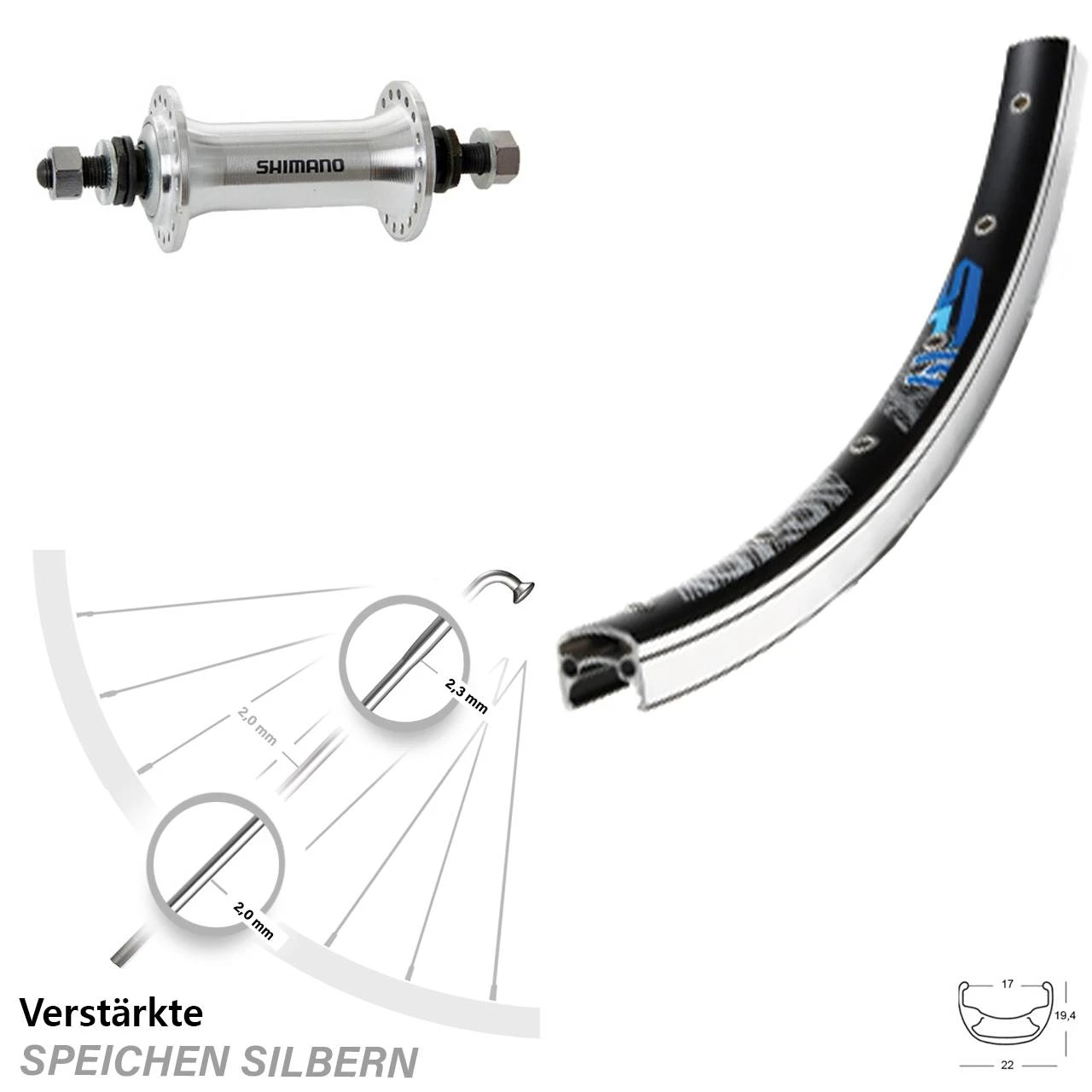 Technische Daten Vorderrad Exal SP 19 schwarz mit Nabe Shimano HB-TX500 silbern Mutterntyp