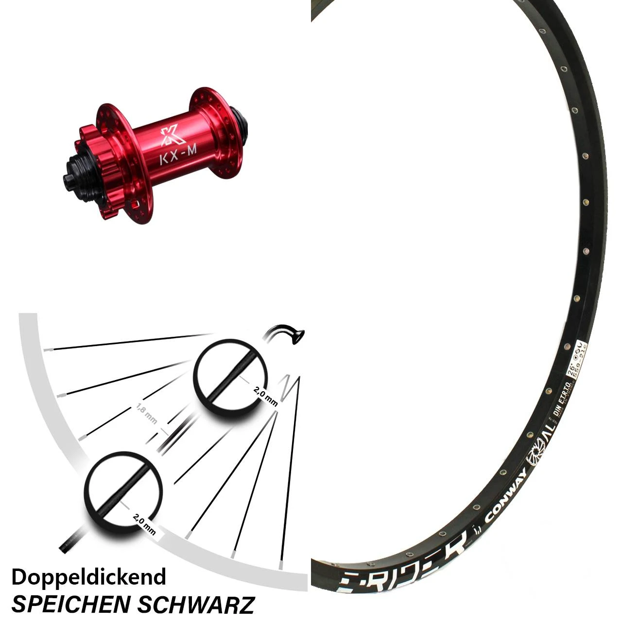- Nabe: KX-M Vorderradnabe Schnellspanner 5×100 mm 6-Loch rot