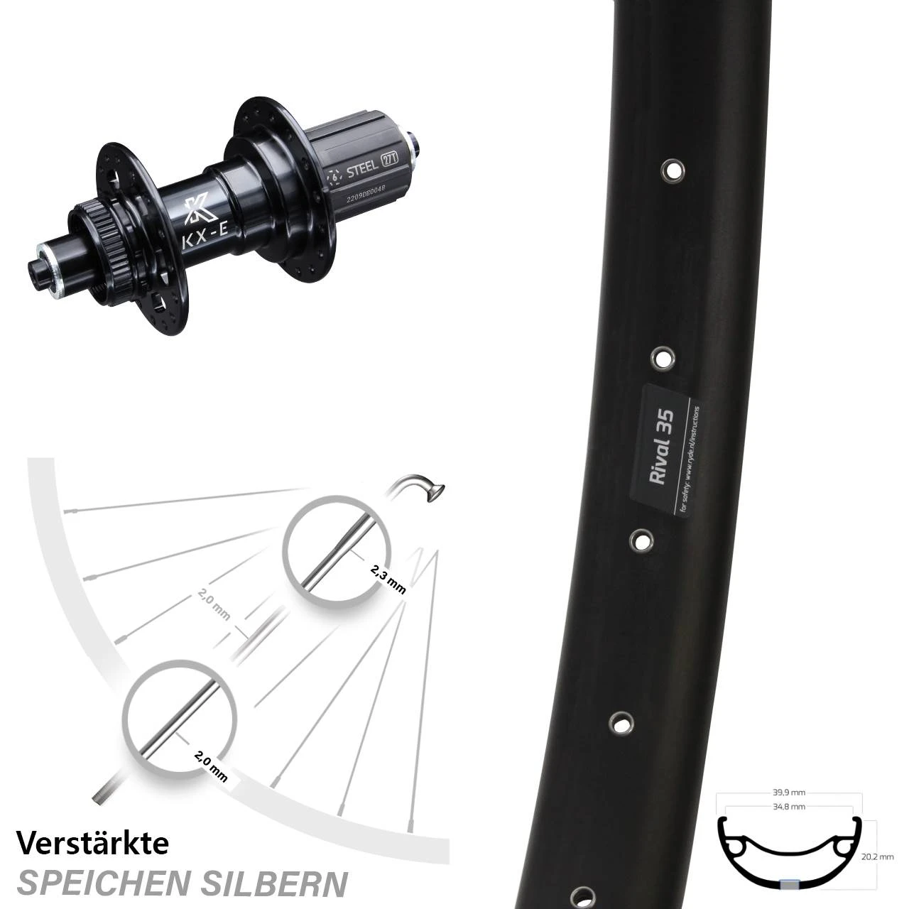 Produktbeschreibung 27,5+ Zoll Hinterrad KX-E Nabe 5×135 mm Centerlock 11-fach Ryde Rival 35 Disc