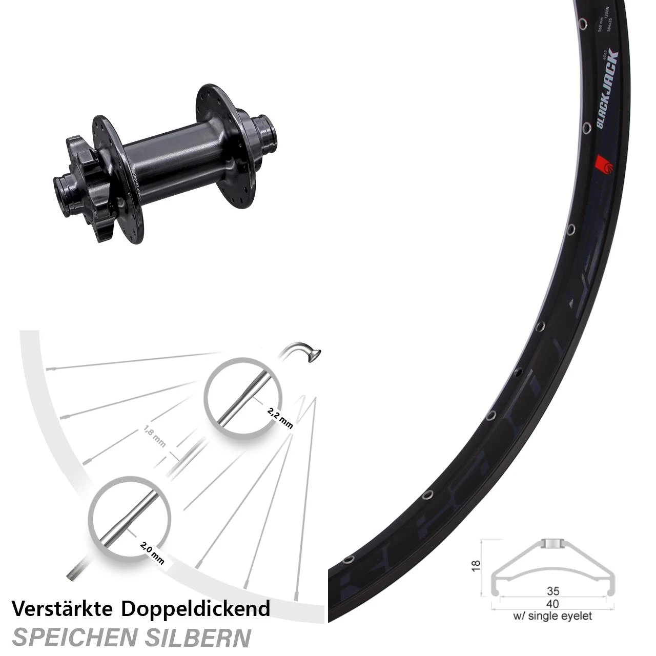 Technische Daten Vorderrad Rodi Ready 35 schwarz mit Nabe Aivee MP2 Boost 6-Loch vorne