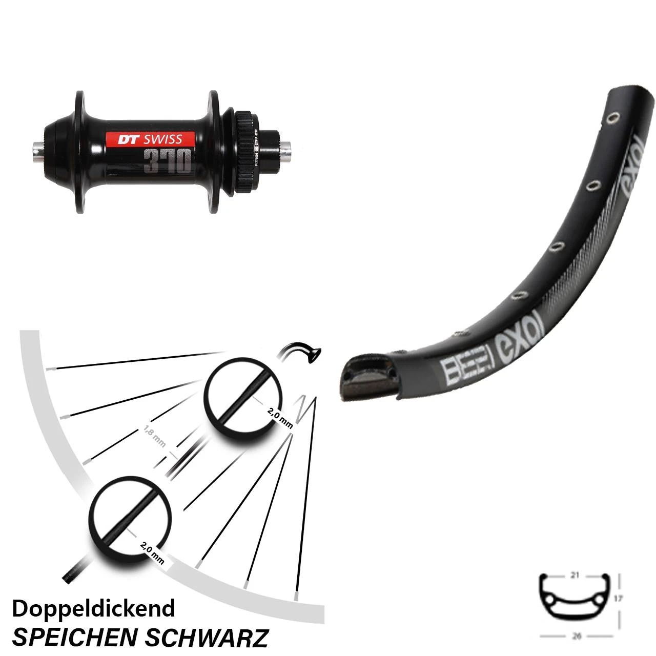Technische Daten Vorderrad Exal BE 21 schwarz mit Nabe DT Swiss 370 Centerlock 5/100