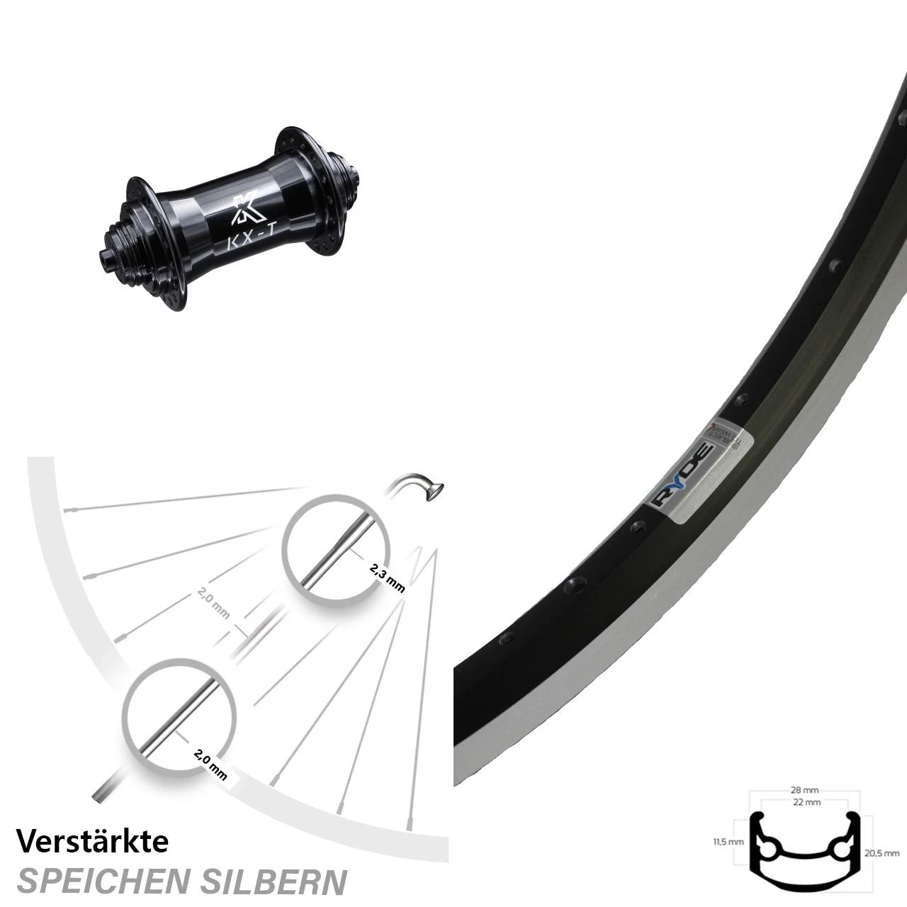 Produktbeschreibung 27,5 Zoll Vorderrad Felgenbremse verstärkt Ryde Andra 35 mit KX-T Nabe schwarz