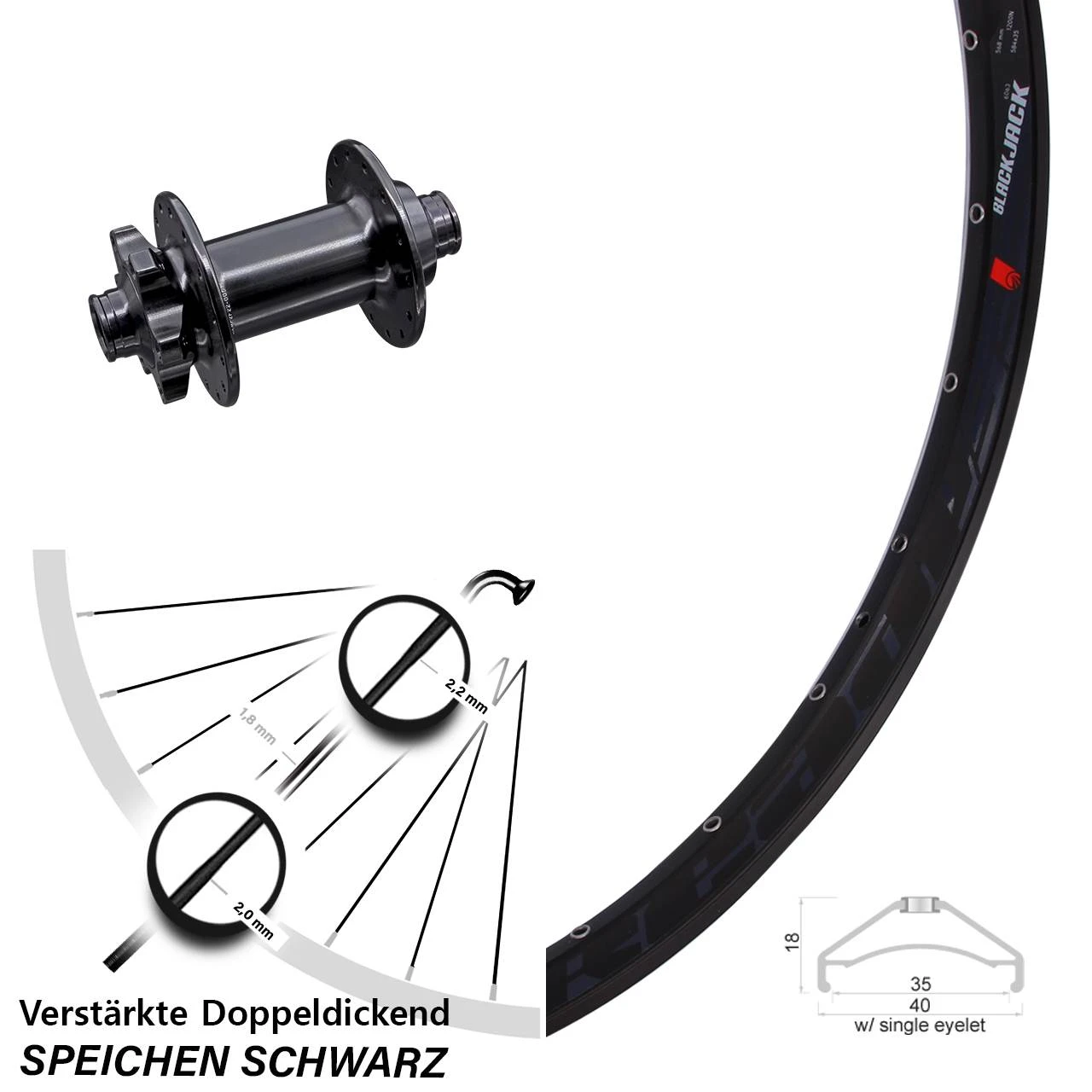 Technische Daten Vorderrad Rodi Ready 35 schwarz mit Nabe Aivee MP2 Boost 6-Loch vorne