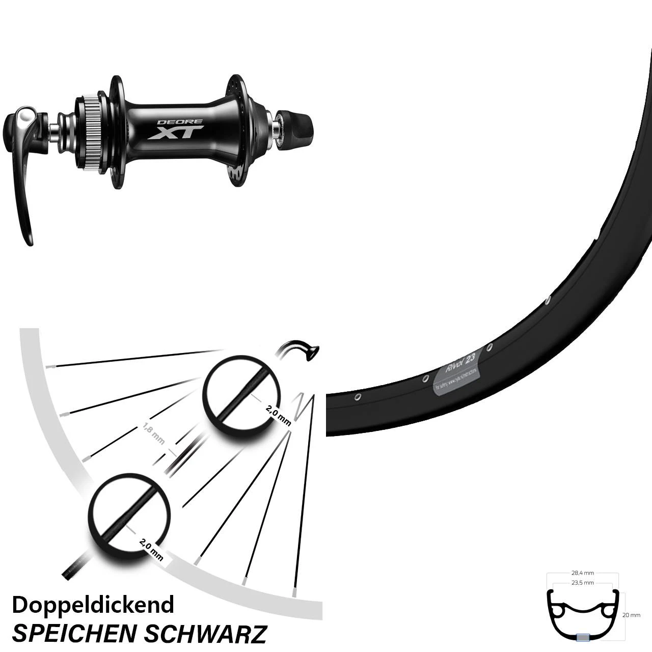 Produktbeschreibung 27,5 Zoll Vorderrad Ryde Rival 23 mit Shimano XT HB-M8000 Nabe