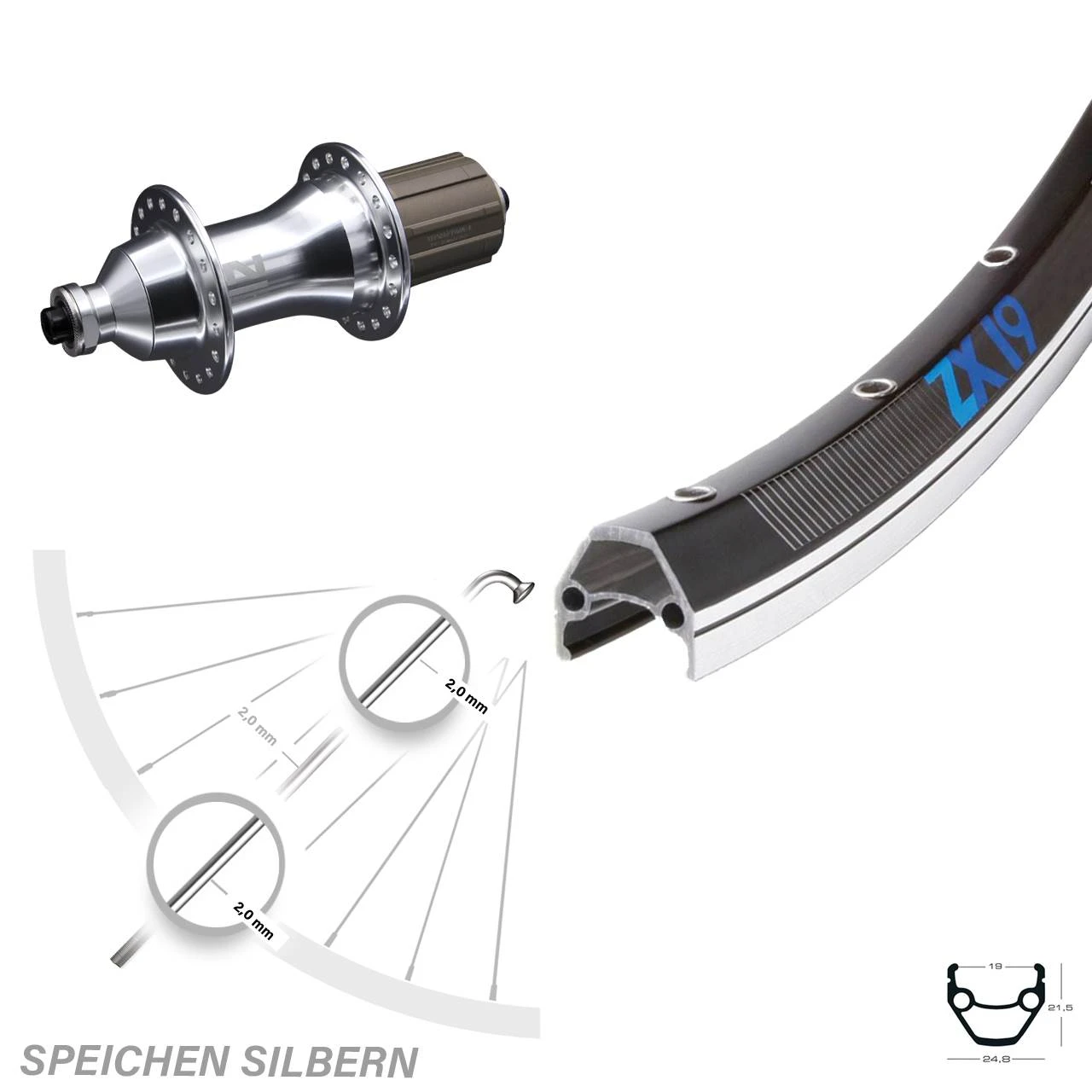 Felge: Die schwarze Exal ZX 19 Hohlkammerfelge aus Aluminium ist vor allem für Radfahrer, die nicht besonders viel unterwegs sind geeignet. Sie hat 28 Zoll und eine ETRTO Größe von 19-622 mm. Es wird eine Reifenbreite von Drahtreifen, Faltreifen mm empfohlen. Die günstige, einfache und doppelt geöste Trekkingfelge ist ausschließlich auf Räder mit einer Felgenbremse ausgelegt und mit einem maximalen Systemgewicht von 110 kg belastet werden. Sie kann an normalen Trekkingrädern eingesetzt werden und wurde zur Verbindung ineinander gesteckt. Kompatibel sind Falt- und Drahtreifen. Die Ventillochbohrung beträgt 6,5 mm und darf auf 8,5 mm aufgebohrt werden.