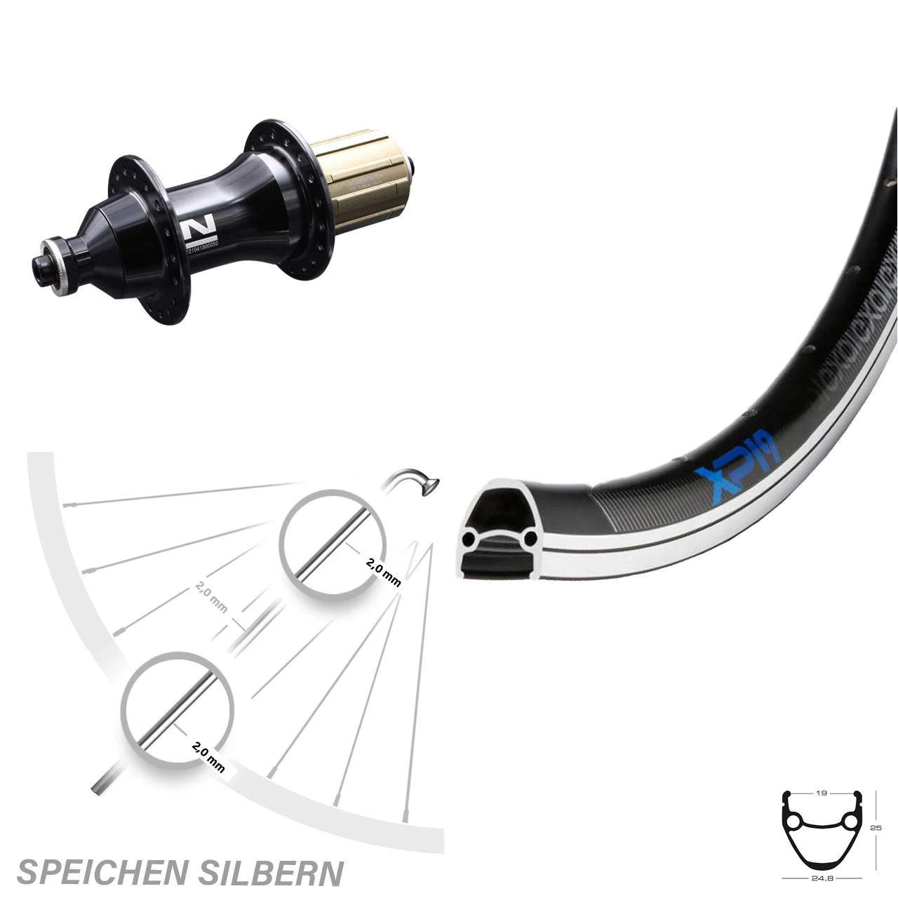 Technische Daten Hinterrad Exal XP 19 schwarz und Nabe Novatec F162SB 5/135 schwarz