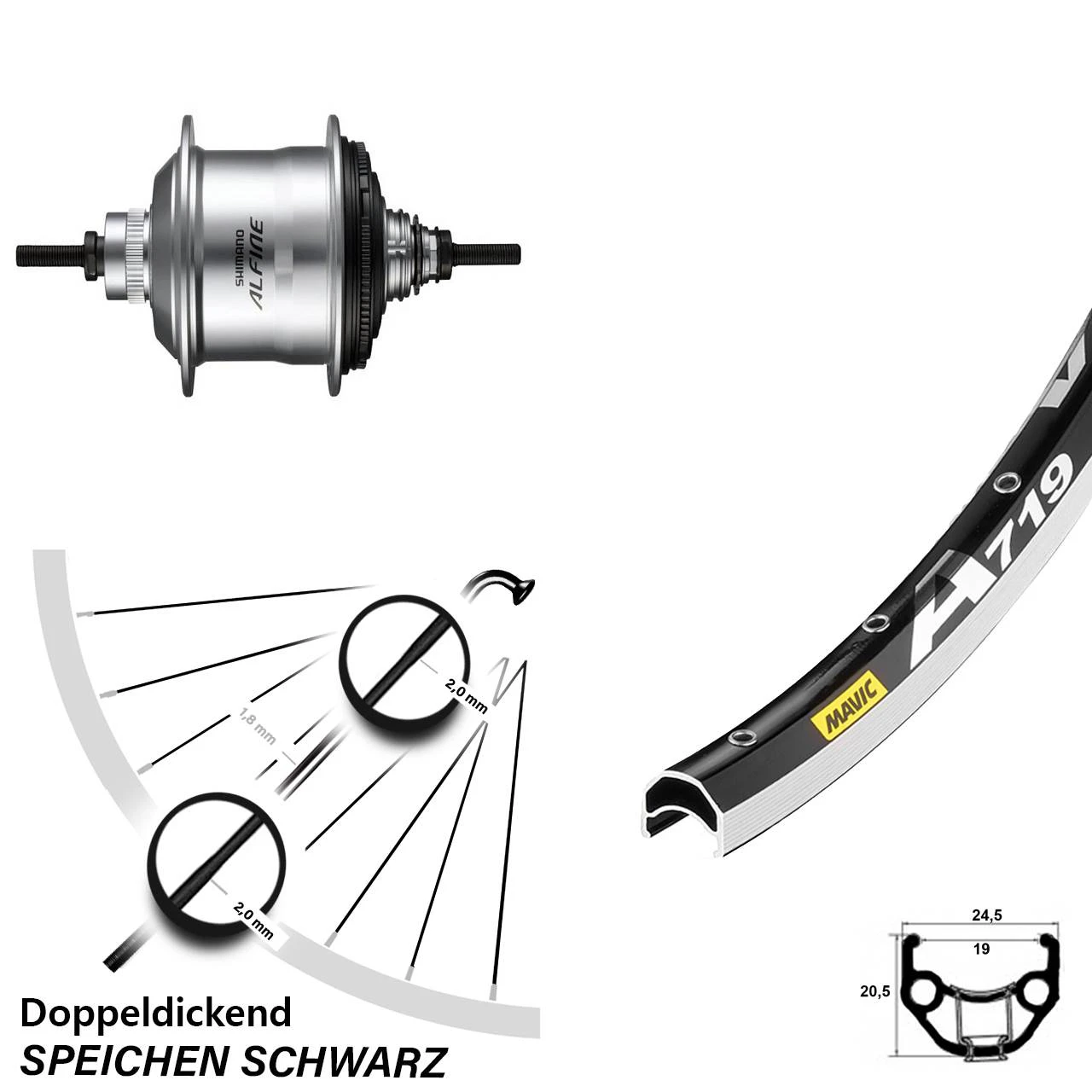 - Felge: Mavic A 719 schwarz