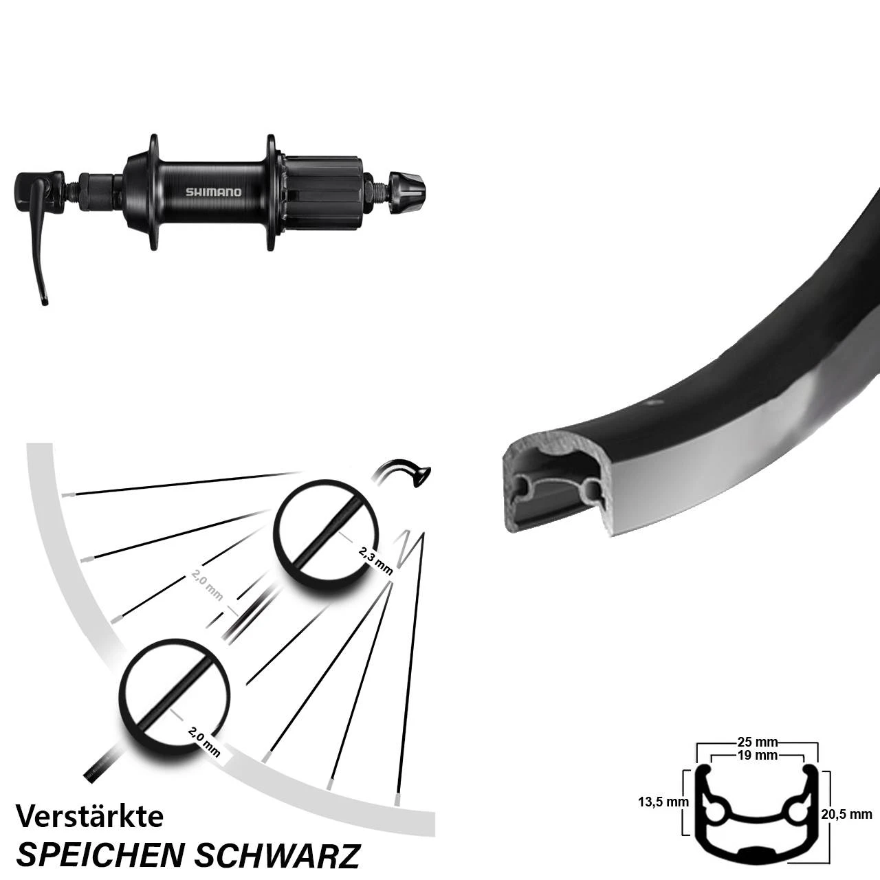 28 Zoll Ryde Andra 30 Hinterrad Shimano 7-Fach schwarz mit verstärkten Speichen