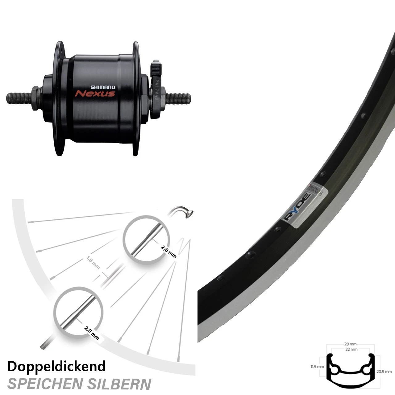 Produktbeschreibung 28 Zoll Vorderes Rad mit Nabendynamo Ryde Andra 35 Shimano Nexus DH-C3000-3N schwarz