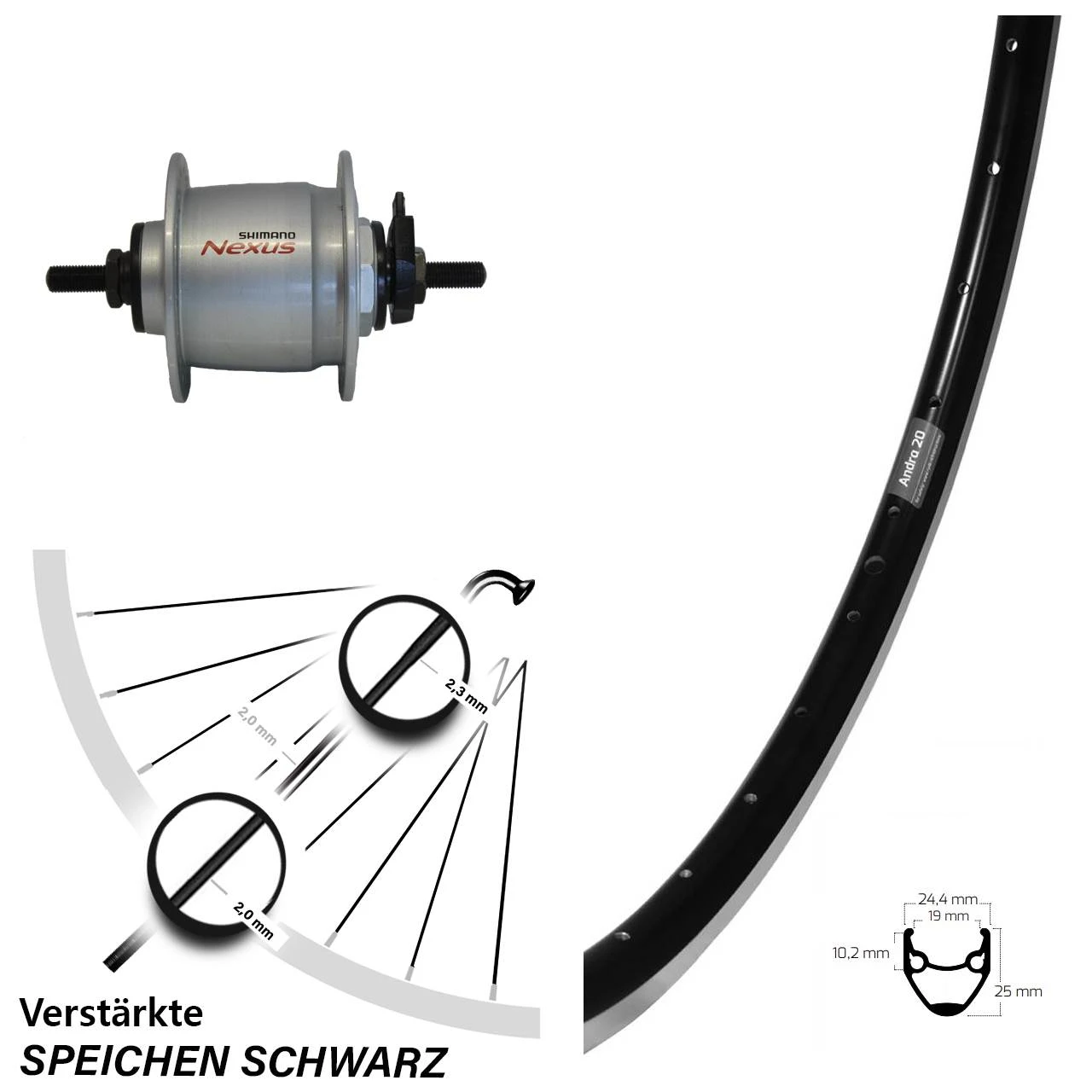 Produktbeschreibung 28 Zoll Vorderrad mit Nabendynamo Ryde Andra 20 Shimano Nexus DH-C6000-1N