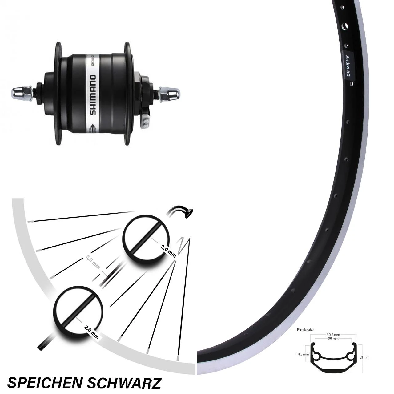 Produktbeschreibung 28 Zoll Vorderrad mit Nabendynamo Ryde Andra 40 Shimano DH-3N31 schwarz