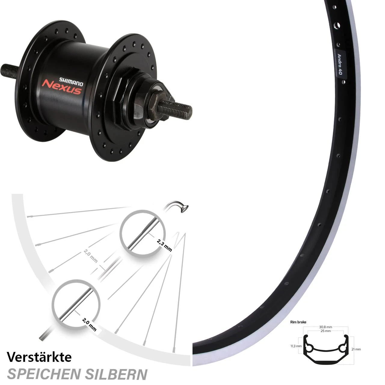 - Vorderrad 28 Zoll, 29 Zoll Ryde Andra 40 schwarz mit Nabendynamo Shimano Nexus DH-C3000-1N schwarz