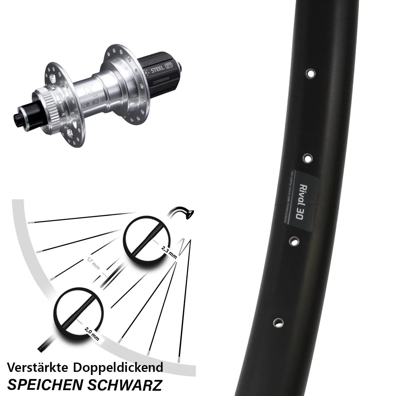 Technische Daten Hinterrad Ryde Rival 30 Disc schwarz und Nabe KX-E Hinterradnabe Centerlock 5/135 Shimano 11-fach silbern