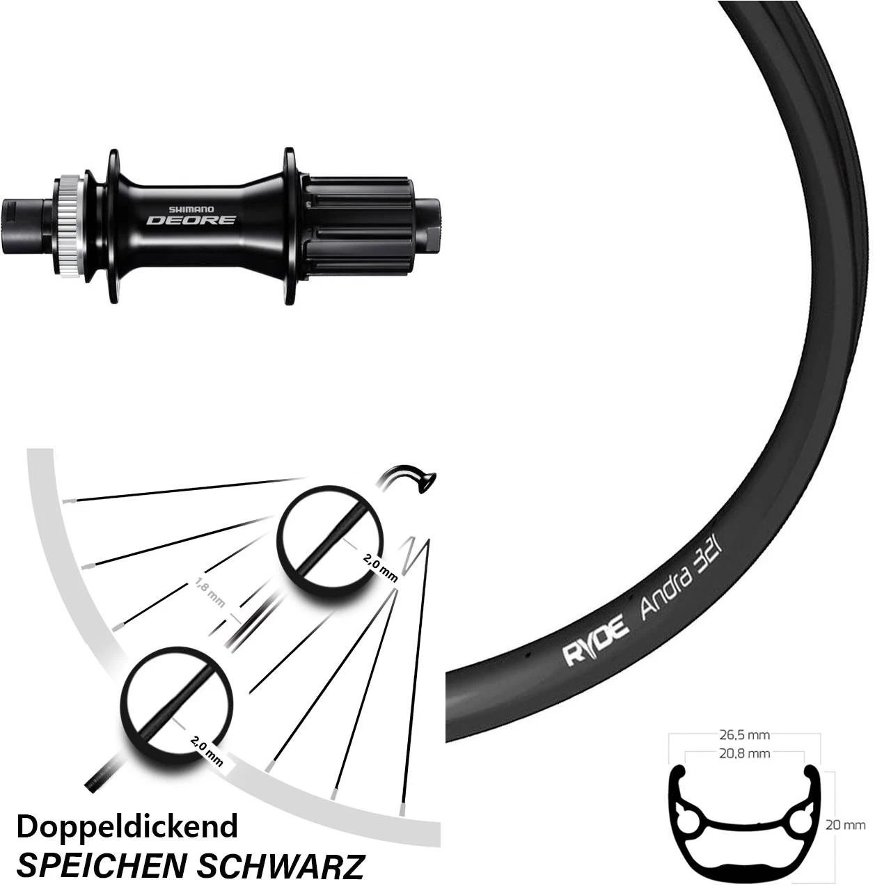 Produktbeschreibung 29 Zoll Hinterrad Shimano Deore FH-M6010 Ryde Andra 321 für Steckachse 142 mm