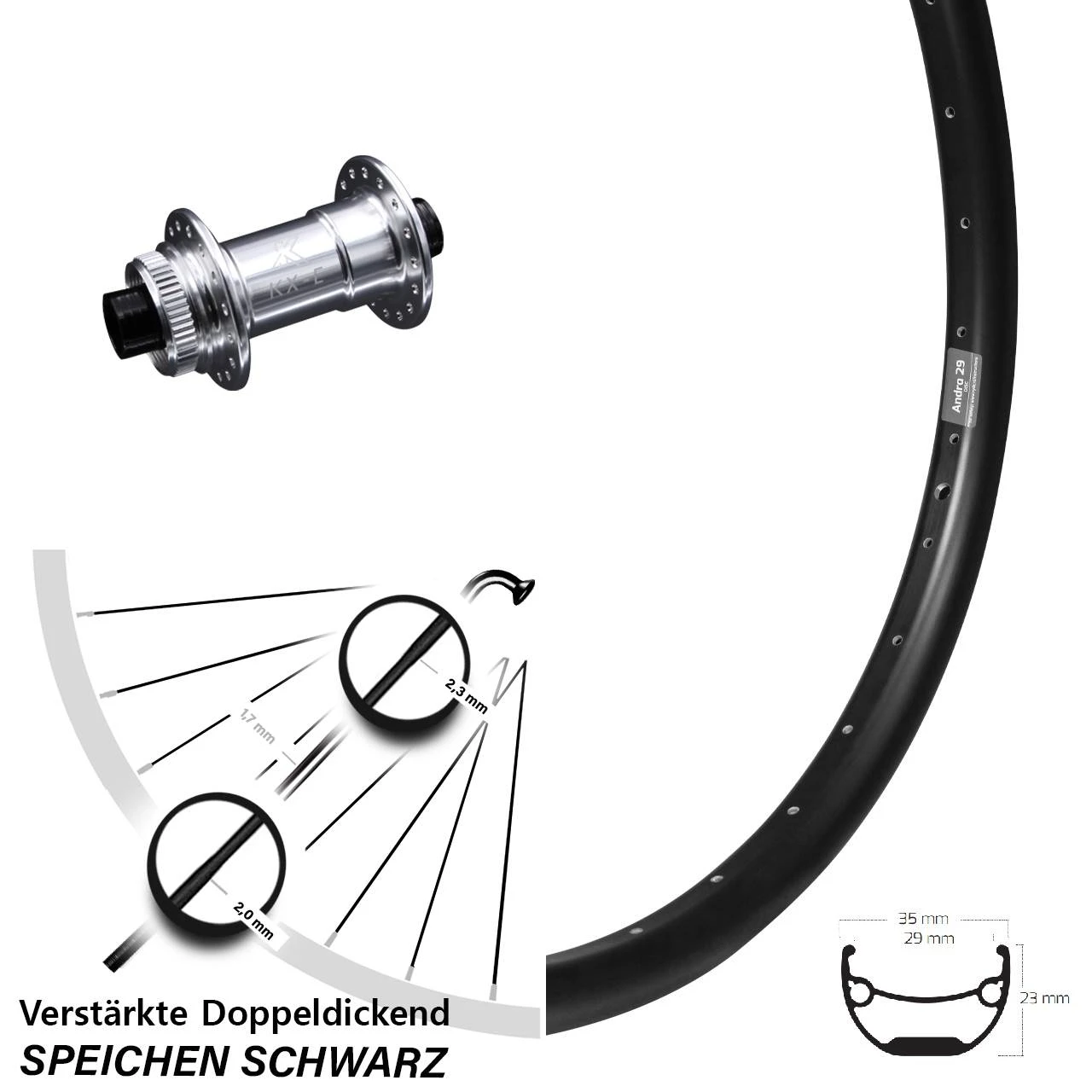 Produktbeschreibung 29 Zoll Vorderrad KX-E Nabe silbern-eloxiert Centerlock 15×100 mm Ryde Andra 29-622 ETRTO