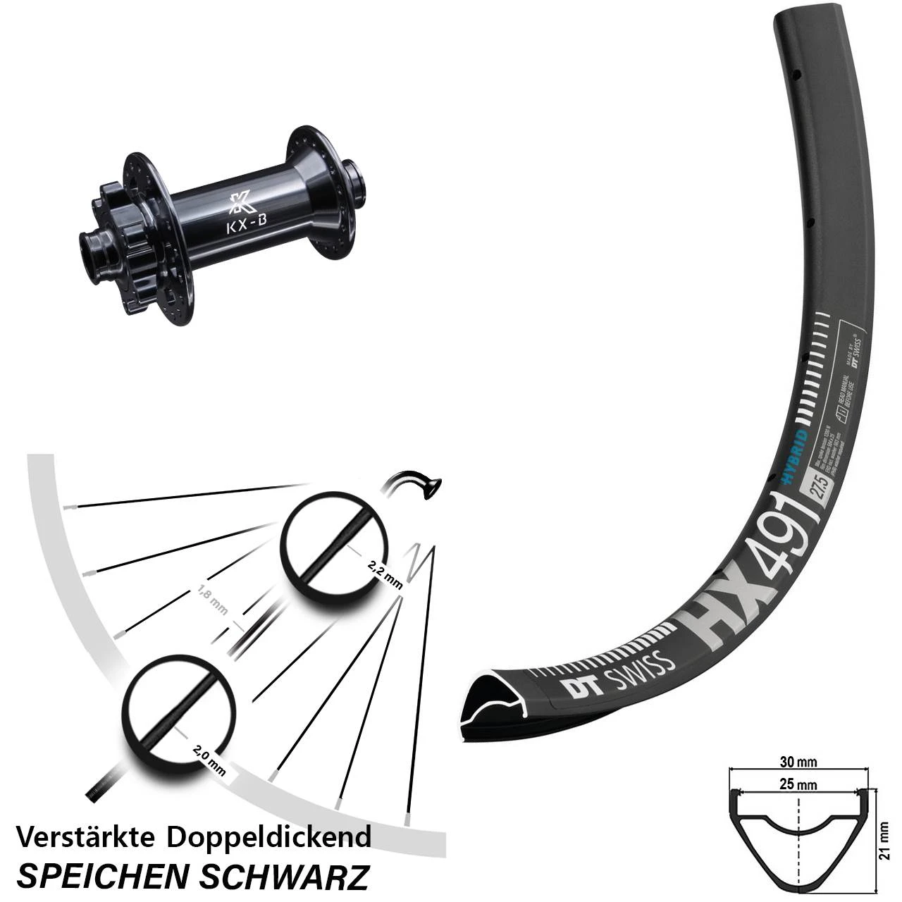 Produktbeschreibung 27,5 Zoll Vorderrad KX-Boost 15×110 mm DT Swiss HX 491 für Steckachse