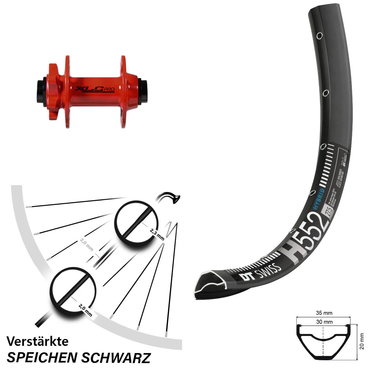 Technische Daten Vorderrad DT Swiss H 552 Disc schwarz mit Nabe XLC Pro VR Disc rot Steckachse