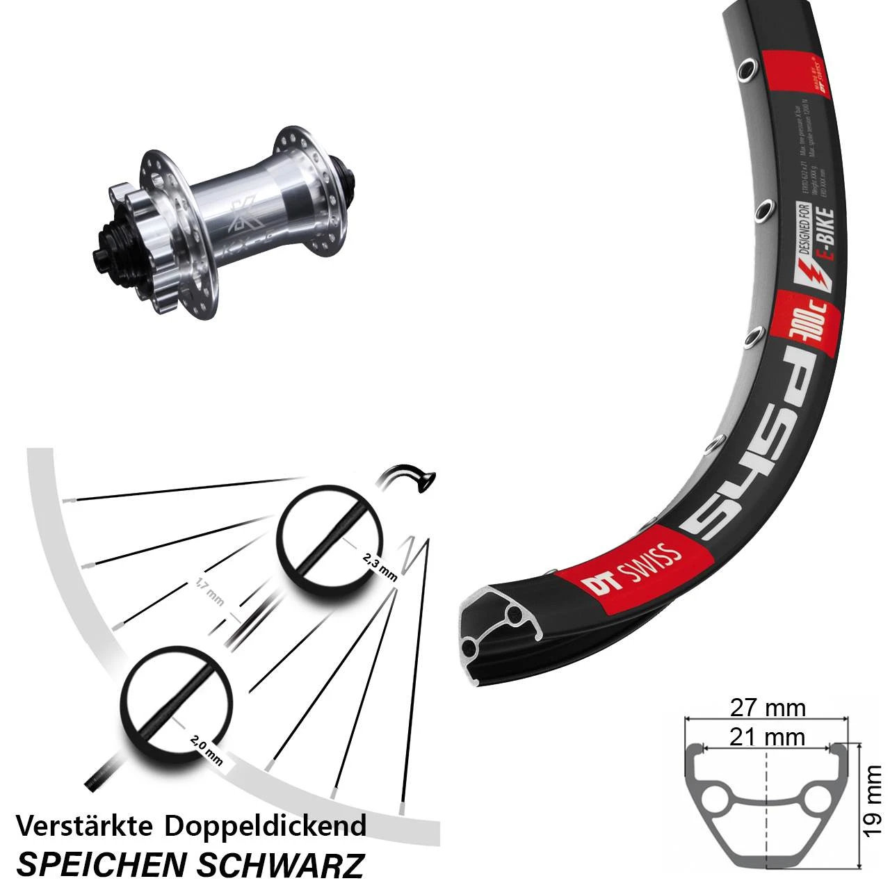 Technische Daten Vorderrad DT Swiss 545D Disc schwarz mit Nabe KX-E Vorderradnabe 6-Loch 5/100 silbern