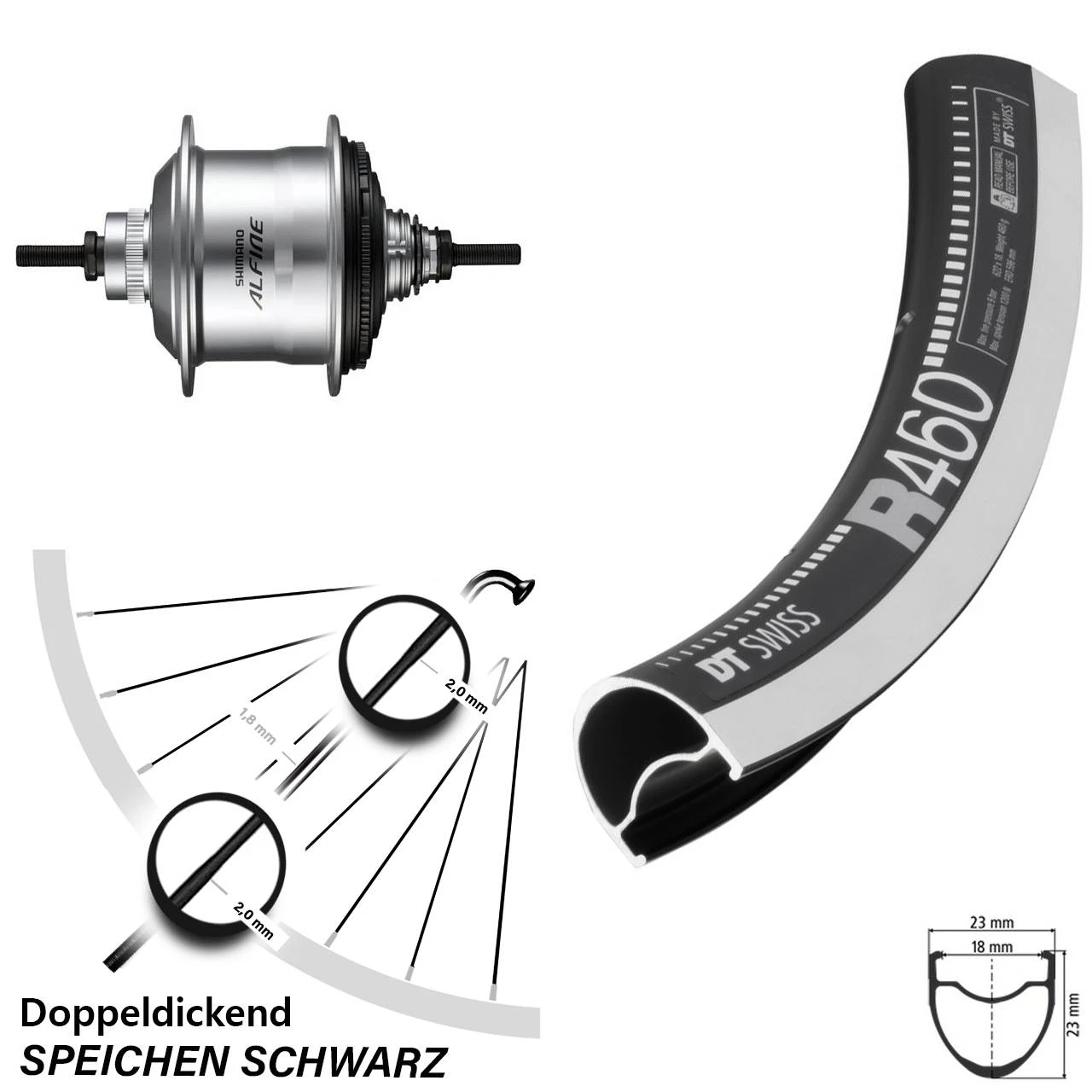 Produktbeschreibung 28 Zoll DT Swiss R-460 Hinterrad Shimano Alfine silbern 11-Gang SG-S7001