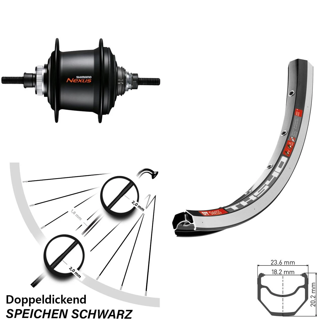 - ein Shimano Nexus Schaltgriff Farbe schwarz oder Schalthebel Farbe schwarz (optional)