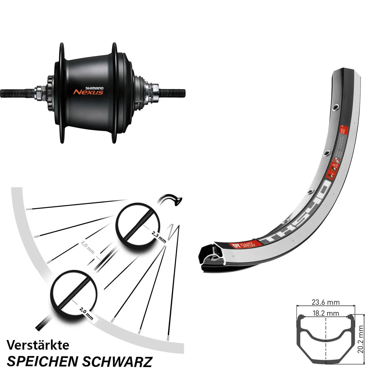 - ein Shimano Nexus Schaltgriff Farbe schwarz oder Schalthebel Farbe schwarz (optional)