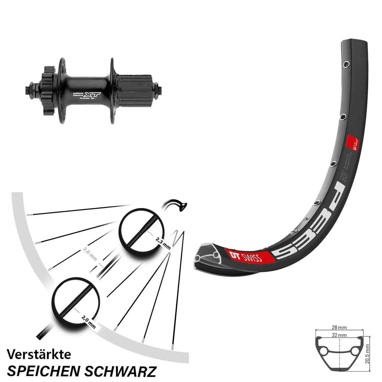 29 Zoll Disc Hinterrad schwarz DT Swiss 533 mit Shimano XT 6-Loch Nabe mit verstärkten Speichen