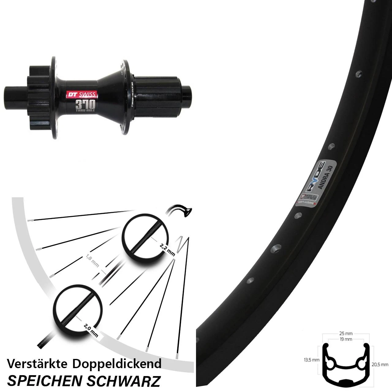 Technische Daten Hinterrad Ryde Andra 30 Disc schwarz und Nabe DT Swiss 370 Disc 6-Loch Shimano 12/142