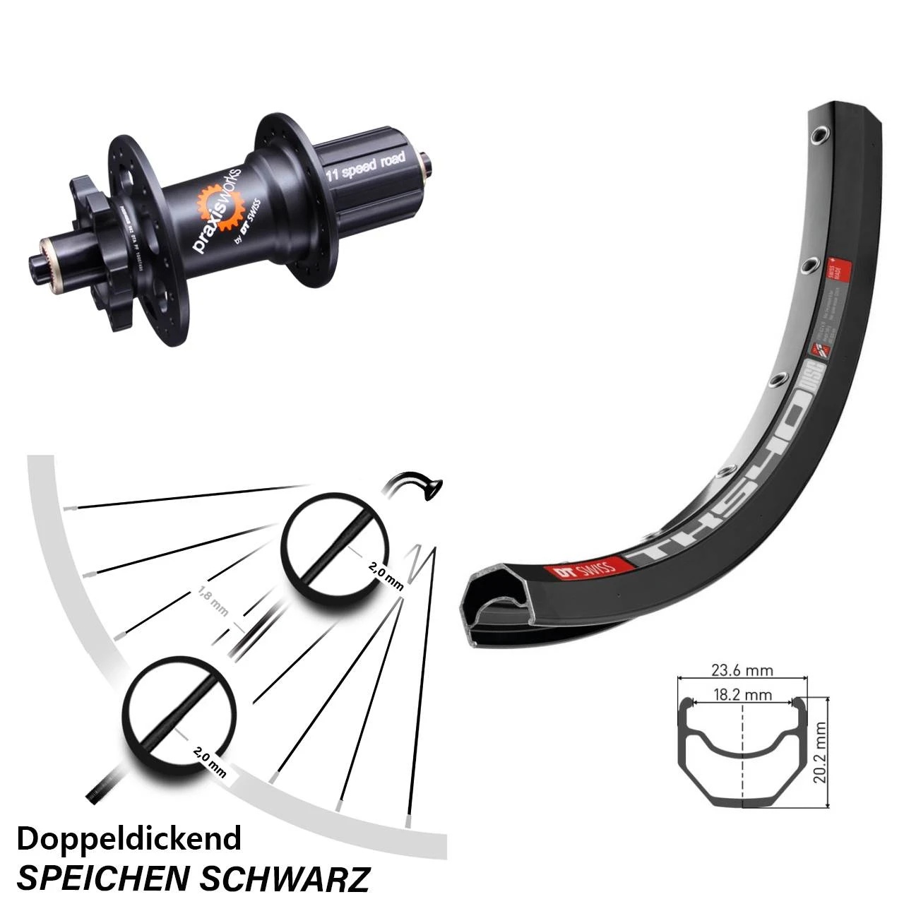 - Felge Maße: Höhe 20,2 mm / Breite 23,6 mm
