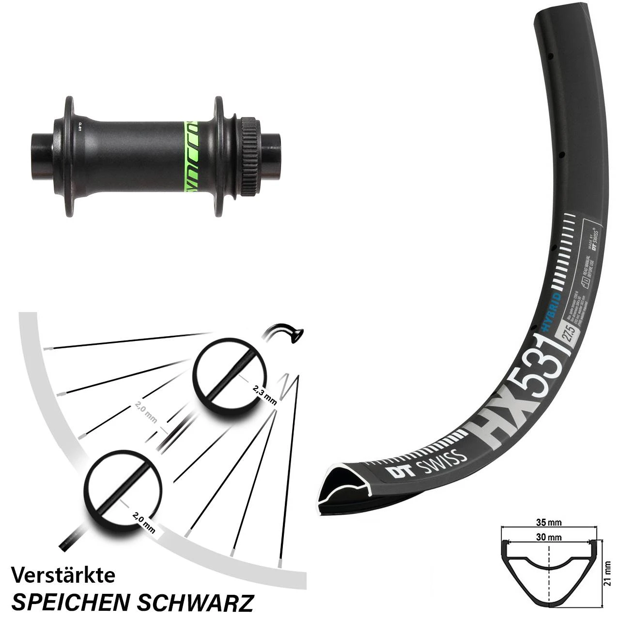 Technische Daten Vorderrad DT Swiss HX 531 DB Disc schwarz mit Nabe Formula CL-811 Syncros Boost schwarz