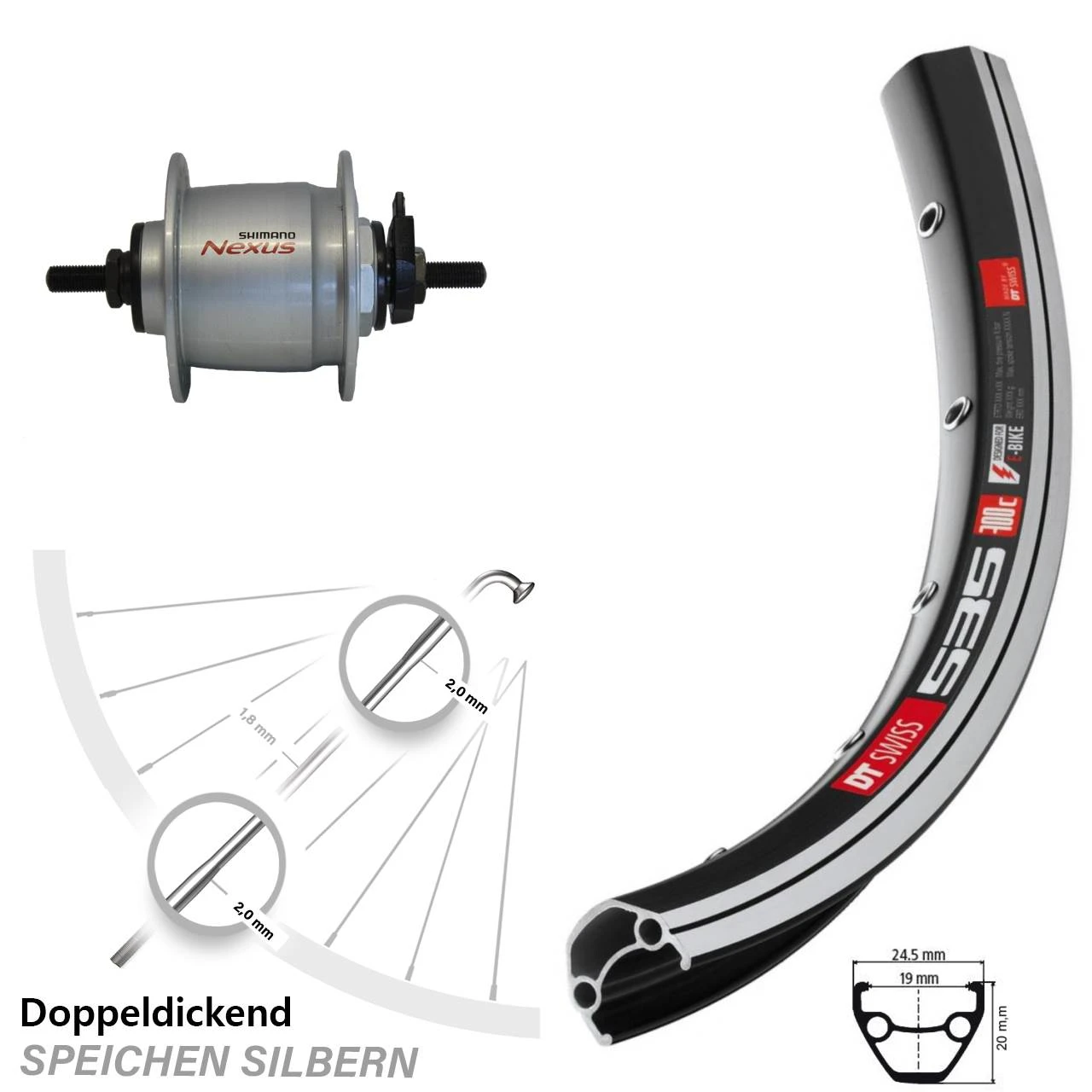- Vorderrad 28 Zoll DT Swiss 535 schwarz mit Nabendynamo Shimano Nexus DH-C6000-1N silbern
