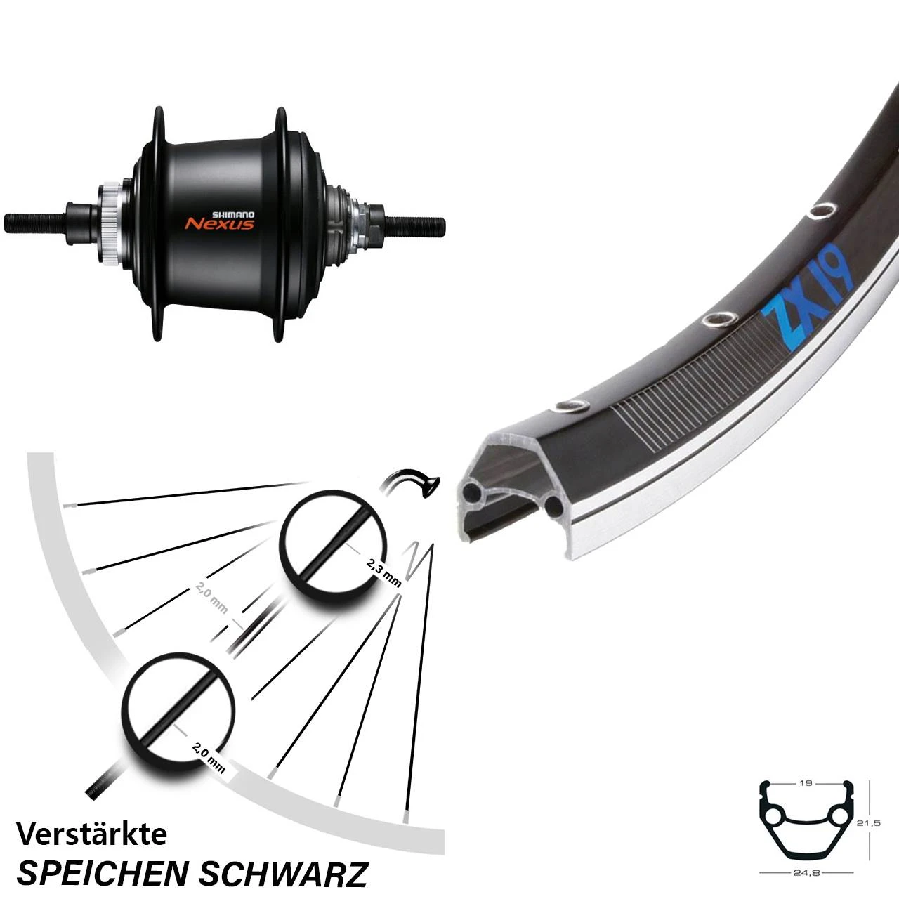 Produktbeschreibung Exal Hinterrad ZX 19 26 Zoll schwarz mit Shimano Nexus 7-Gang Disc