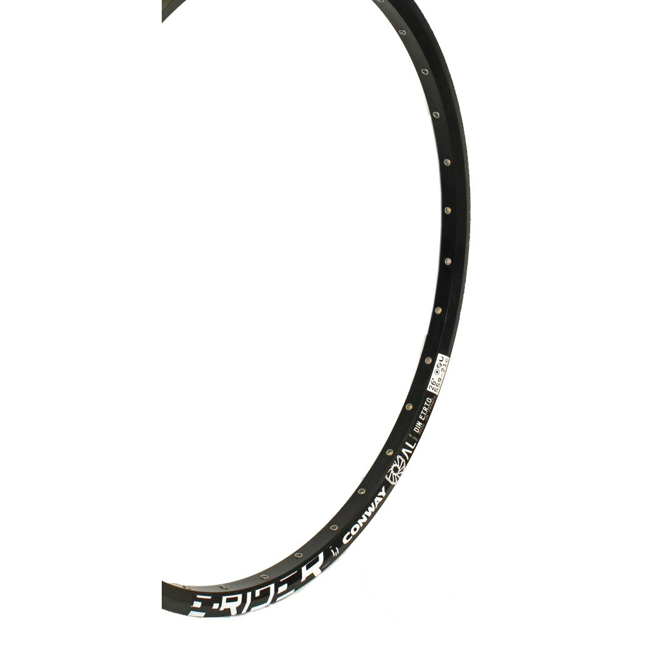 Die schwarze Mach 1 Felge Magma ist eine solide Einsteiger-Hohlkammer-Felge, dank der Fertigung aus Aluminium ist sie jedoch relativ leicht. Das Modell Magma verwendet einfach geöste Nippellöcher und weist ein breites Profil auf. Die saubere und gute Verarbeitung der schwarzen Mach 1 Magma Aluminium-Felge sorgt zudem für eine gute Langlebigkeit. Auf der Magma Fahrradfelge (Maulweite 19 mm, Höhe 21 mm, Breite 29 mm) können auch breitere Reifen aufgezogen werden. Sie ist für den Einsatz am Mountainbike / MTB, Lastenrad, E-Bike bis 25 km/h, E-MTB, E-Cargo vorgesehen. Die Mach 1 Magma Felge ist für Scheibenbremsen konzipiert. Mit bis zu 140 kg Systemgewicht ist die Felge Magma vom französischen Hersteller Mach 1 belastbar. Optimal also, wenn das Fahrrad mit mittelschwerem Gewicht (z.B. in den Packtaschen) beladen wird.