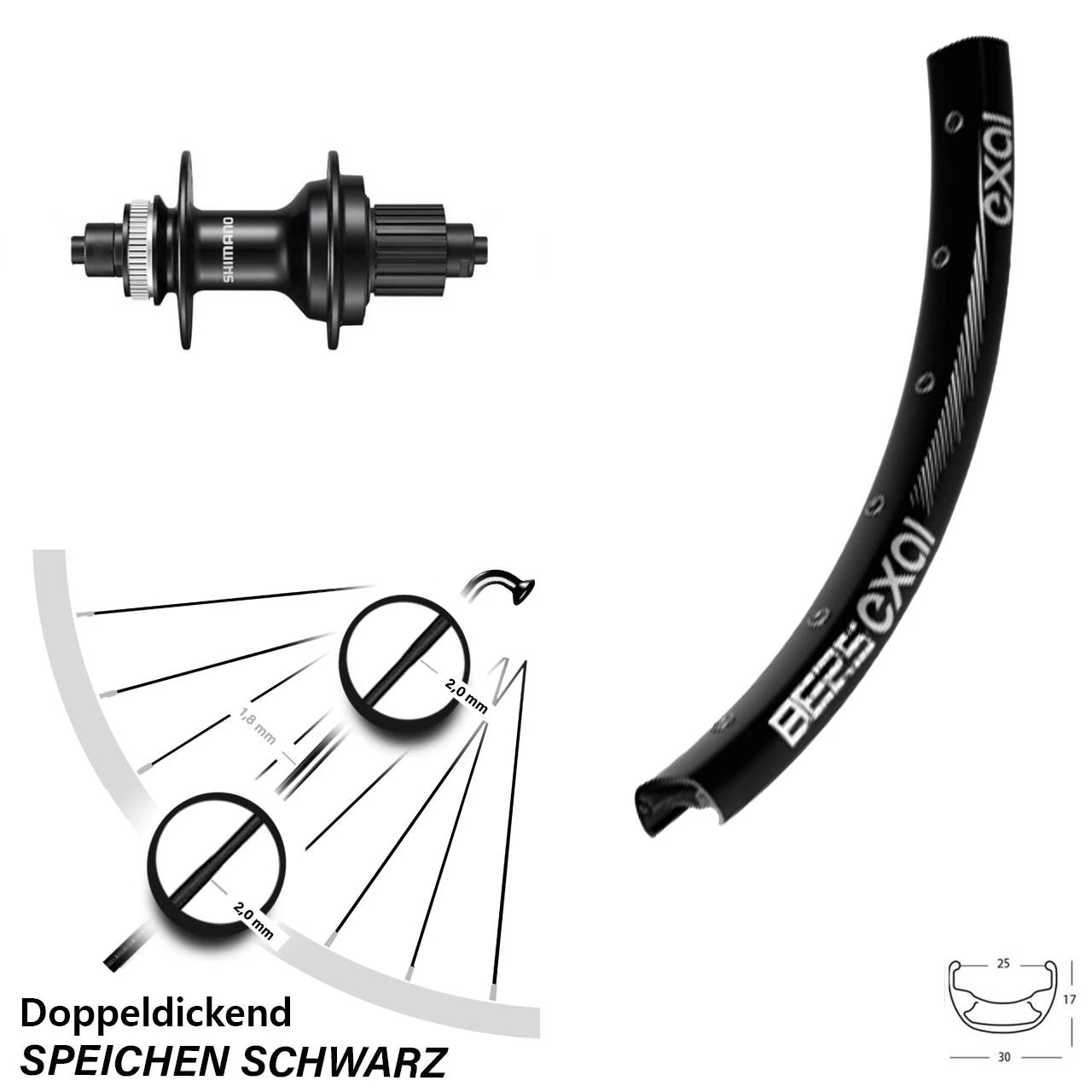 Technische Daten Hinterrad Exal BE 25 schwarz und Nabe Shimano FH-MT500 schwarz