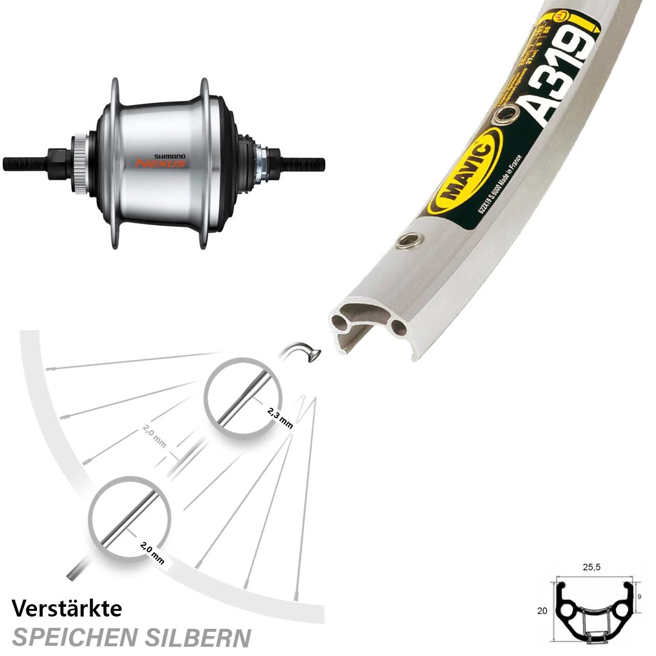 Produktbeschreibung Hinterrad 28 Zoll Mavic A-319 Shimano Nexus 7-Gang Centerlock silbern