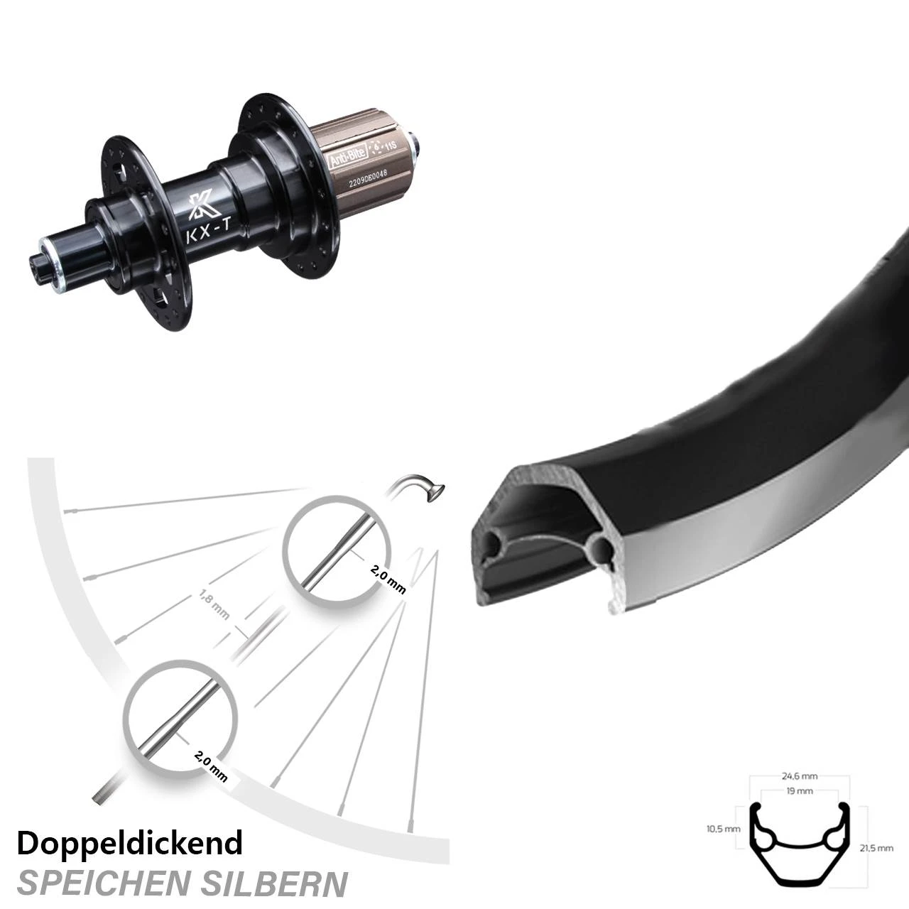 - Nabe: KX-T Hinterradnabe 5/135 Felgenbremse schwarz