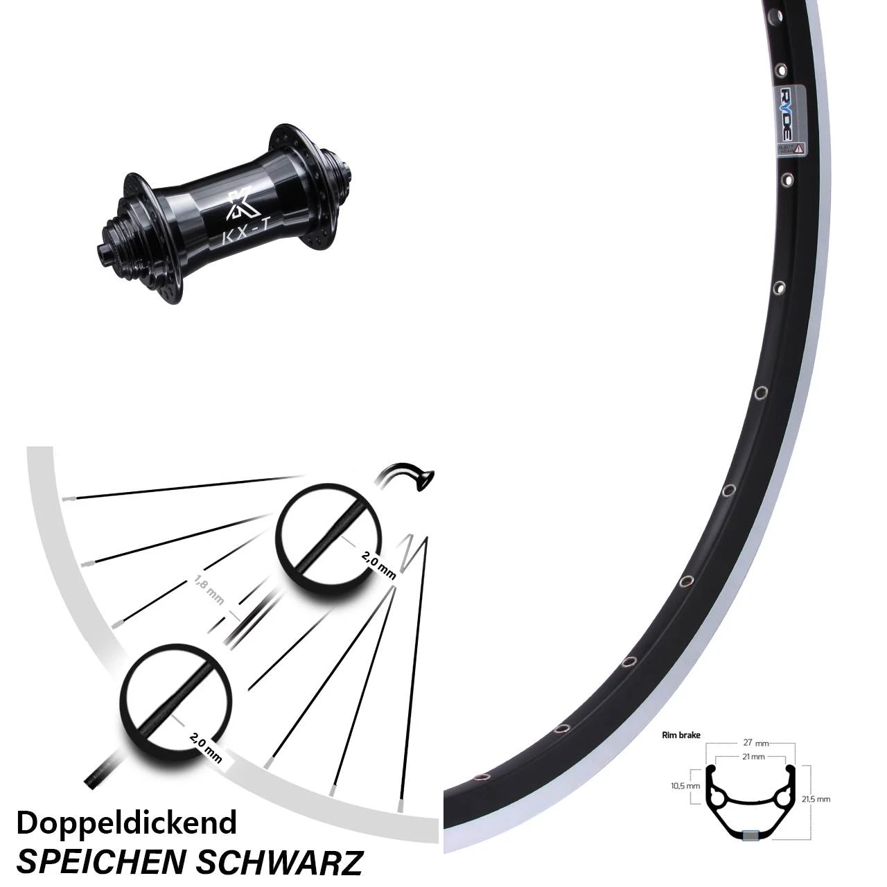 Technische Daten Vorderrad Ryde ZAC 421 Felgenbremse schwarz mit Nabe KX-T Vorderradnabe 5/100 Felgenbremse schwarz