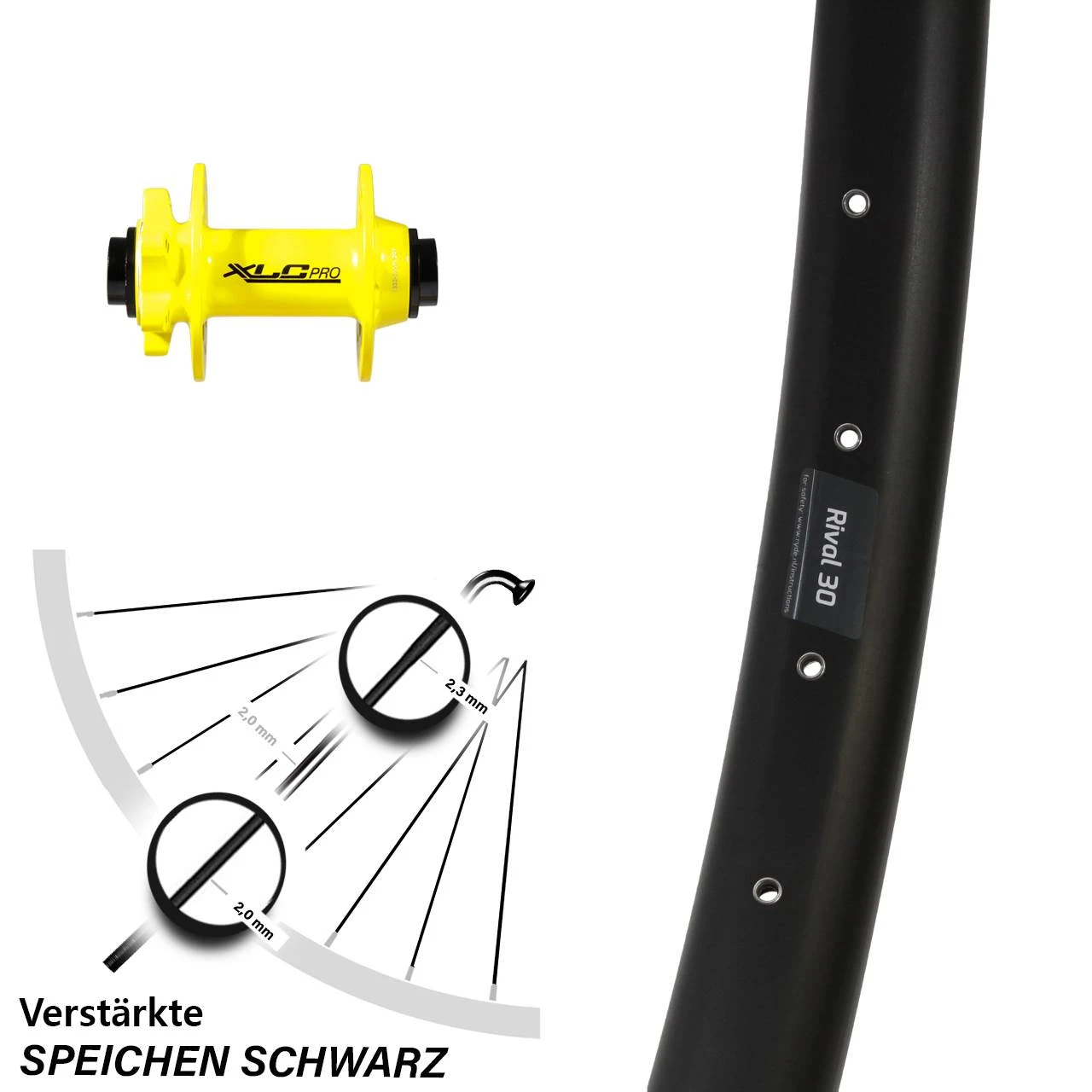 Technische Daten Vorderrad Ryde Rival 30 Disc schwarz mit Nabe XLC Pro VR Disc gelb Steckachse