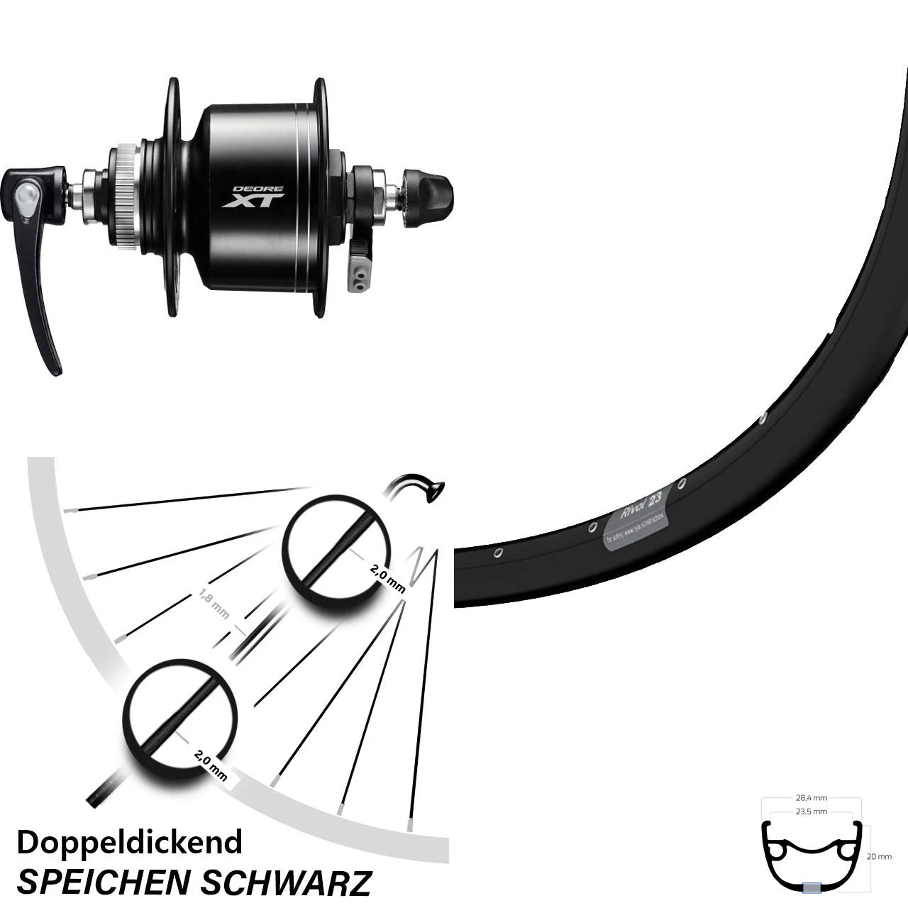 Technische Daten vorderes Laufrad Ryde Rival 23 Disc schwarz & Nabendynamo Shimano Deore XT DH-T8000 schwarz