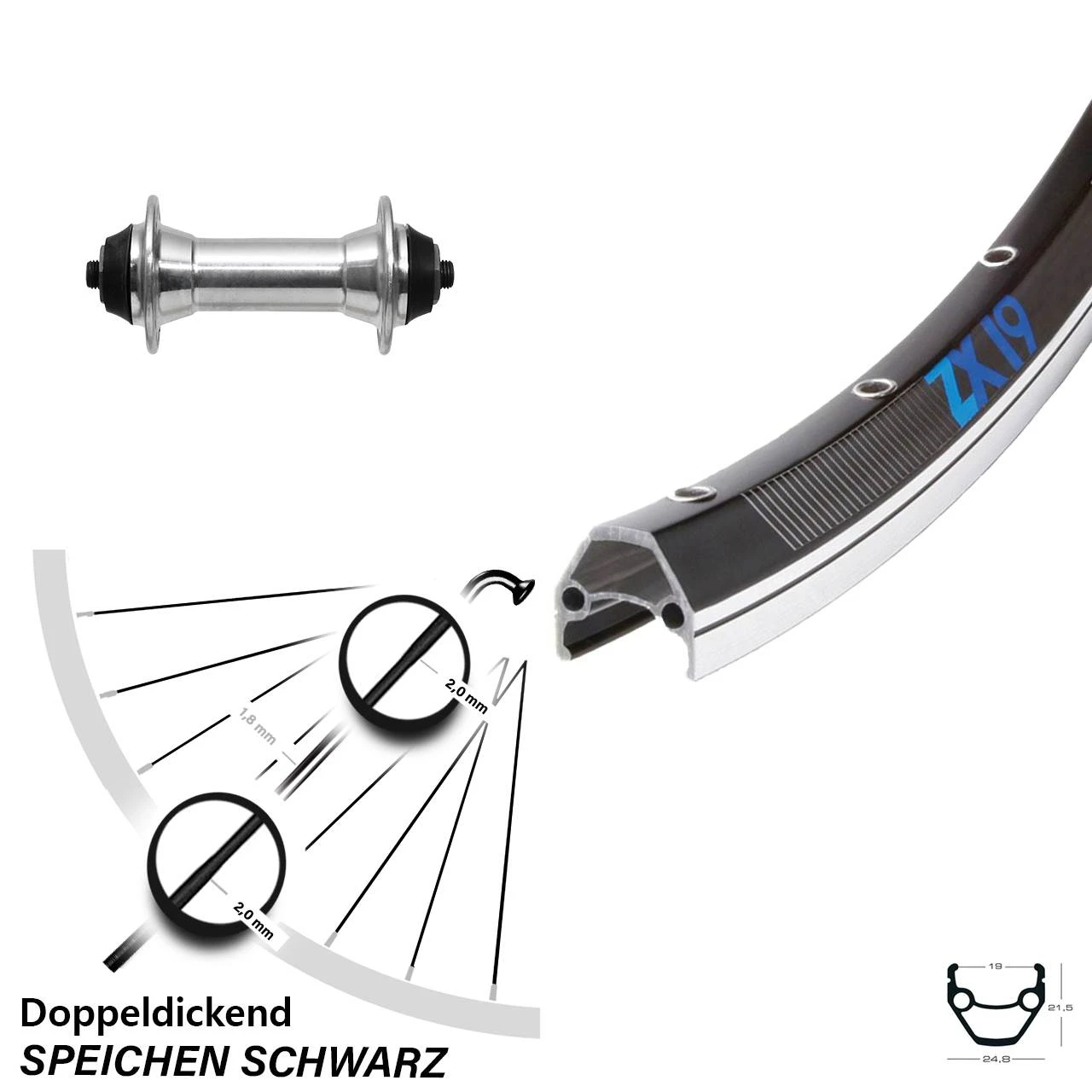 Technische Daten Vorderrad Exal ZX19 schwarz doppelt geöst mit Nabe Formula FM-21 silbern