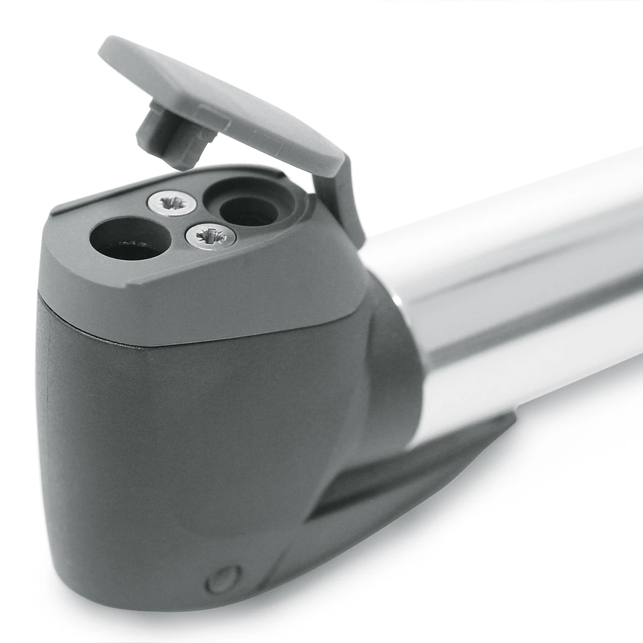 Top-Level Aluminiumpumpe mit neuem universellem Multi-Valve Ventilanschluss – ideal für Trekking- und Mountainbikes. Sie bietet einen hohen Bedienkomfort durch T-Griff mit weichen Softpads. Die Teleskopfunktion bietet viel Volumen pro Hub und eine zuschaltbarer Hochdruckstufe.