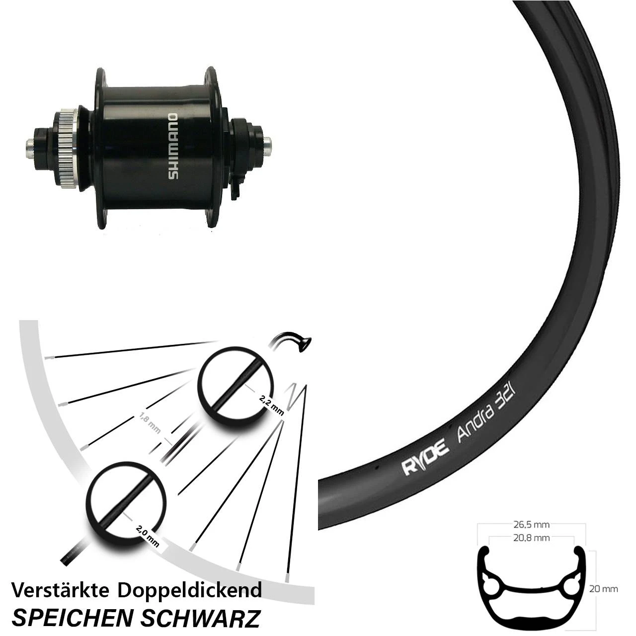 - Vorderrad 26 Zoll Ryde Andra 321 schwarz mit Nabendynamo Shimano DH-UR700 schwarz