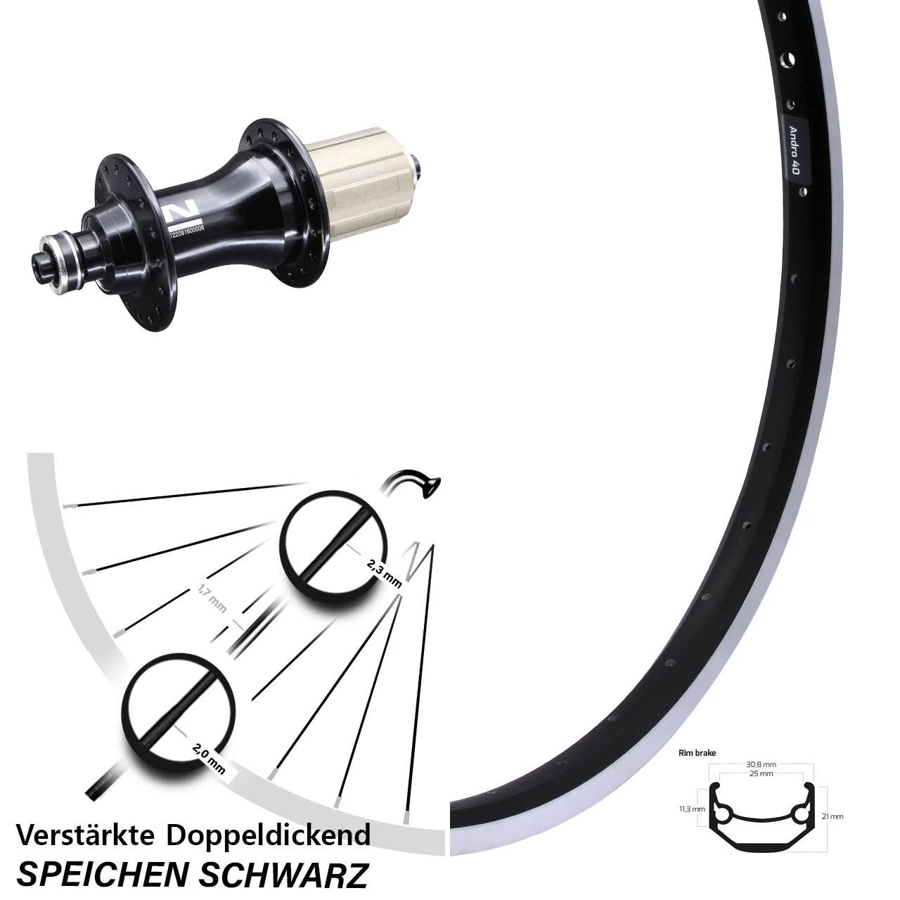 Technische Daten Hinterrad Ryde Andra 40 Felgenbremse schwarz und Nabe Novatec F162SB 5/130 schwarz