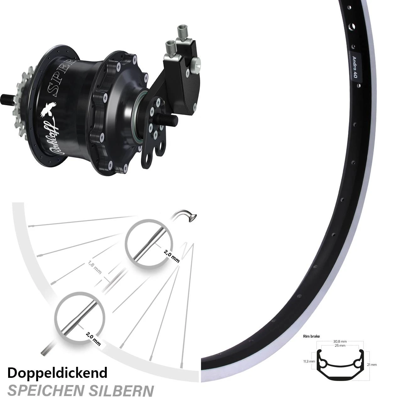 - Hinterrad 28 Zoll, 29 Zoll Ryde Andra 40 schwarz mit Getriebenabe Rohloff Speedhub 500/14 TS EX schwarz