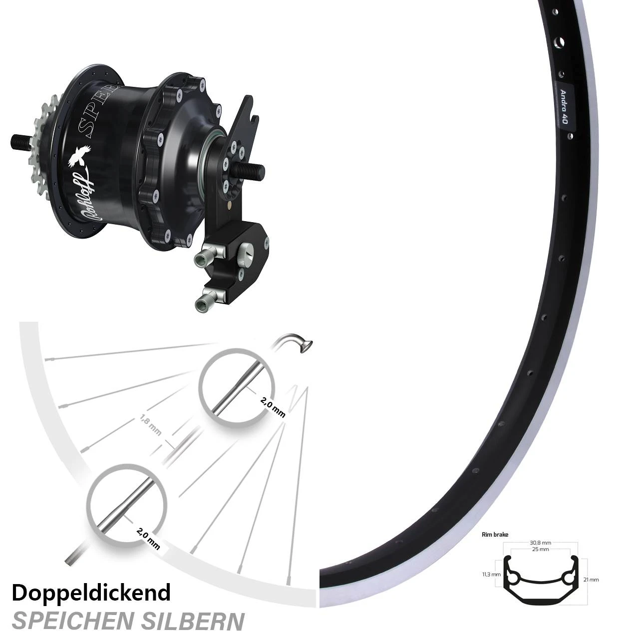 Technische Daten Hinterrad Ryde Andra 40 Felgenbremse schwarz und Nabe Rohloff Speedhub 500/14 TS EX OEM2 schwarz