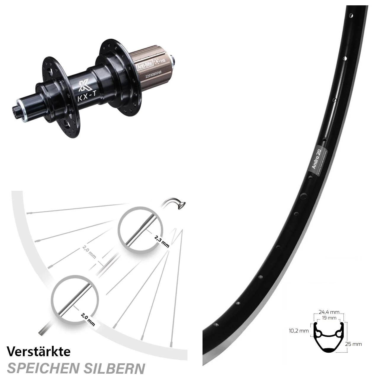 Ryde Andra 20 Hinterrad 28 Zoll mit KX-T Nabe 135 mm mm schwarz 6 Kugellager mit verstärkten Speichen