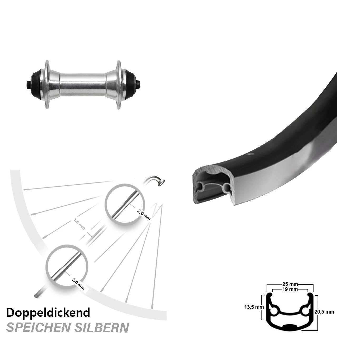 Technische Daten Vorderrad Ryde Andra 30 Felgenbremse schwarz mit Nabe Formula FM-21 silbern